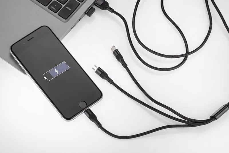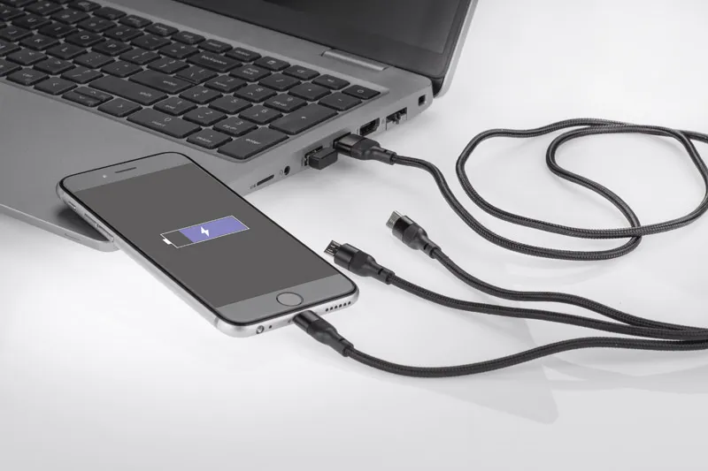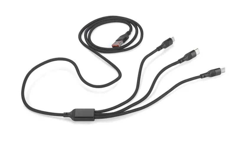 FAST kabel za punjenje duljine oko 123 cm s tri priključka (USB, micro USB, USB type C), kompatibilan s većinom uređaja, brzo punjenje 2.4-3A, omogućuje prijenos podataka putem USB Type C, opletena izrada za otpornost na oštećenja, pogodan za kućnu, uredsku i mobilnu upotrebu