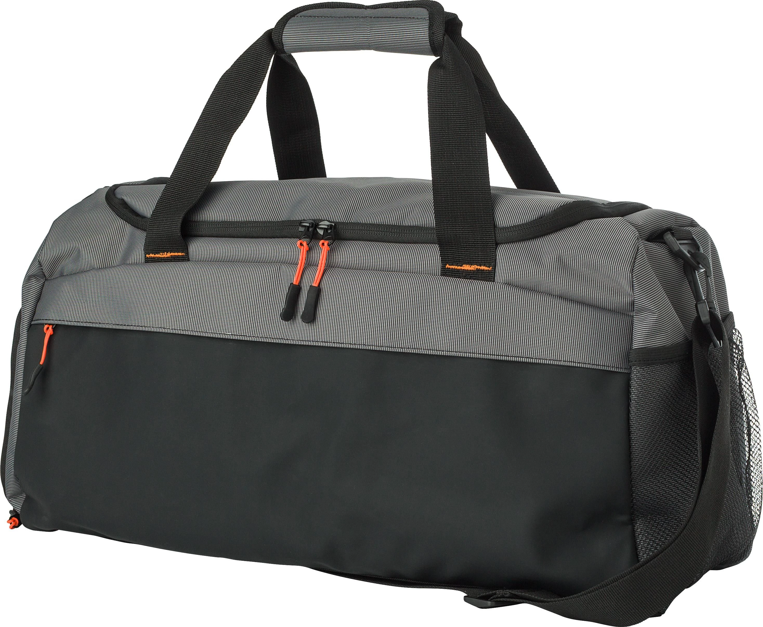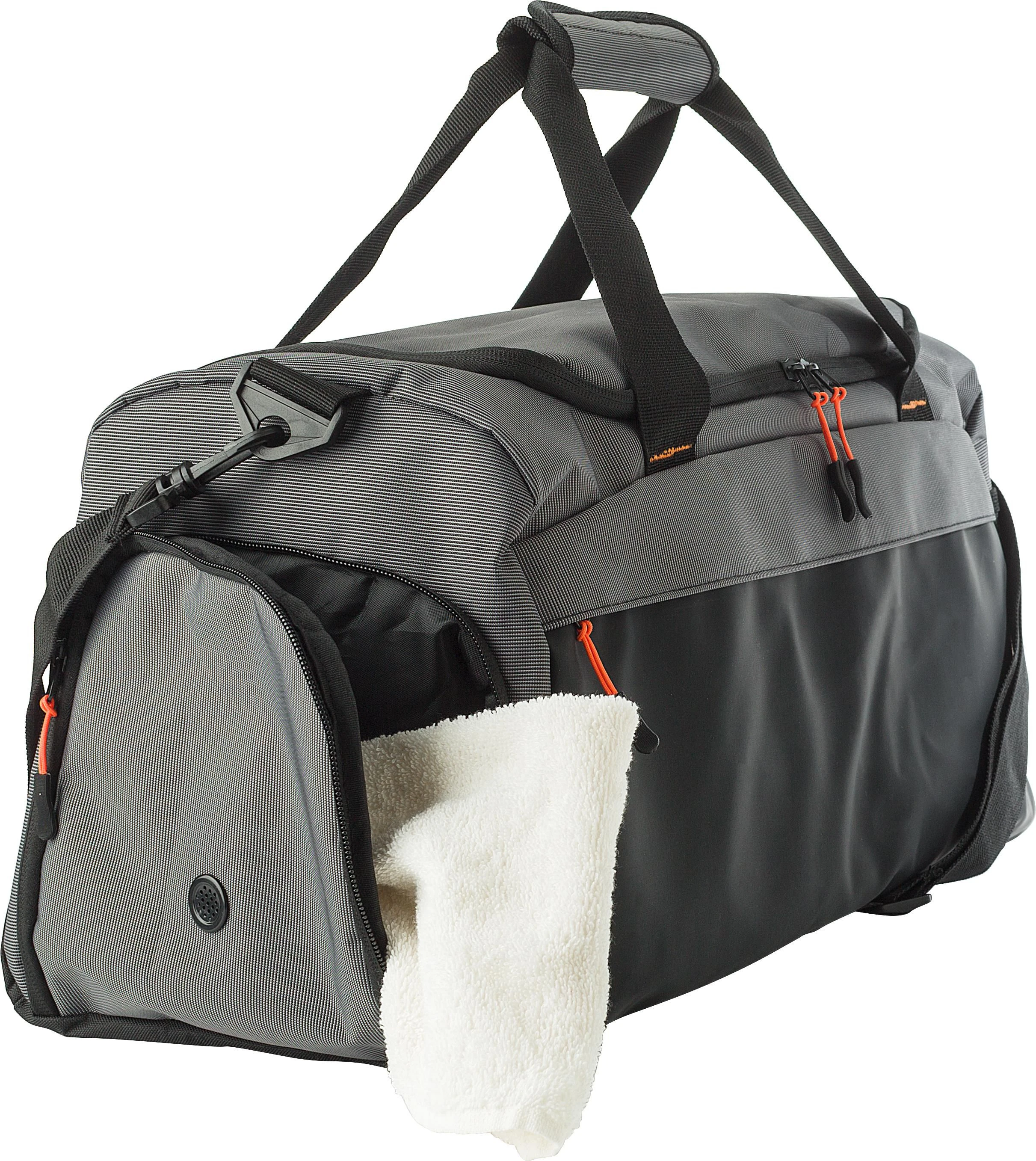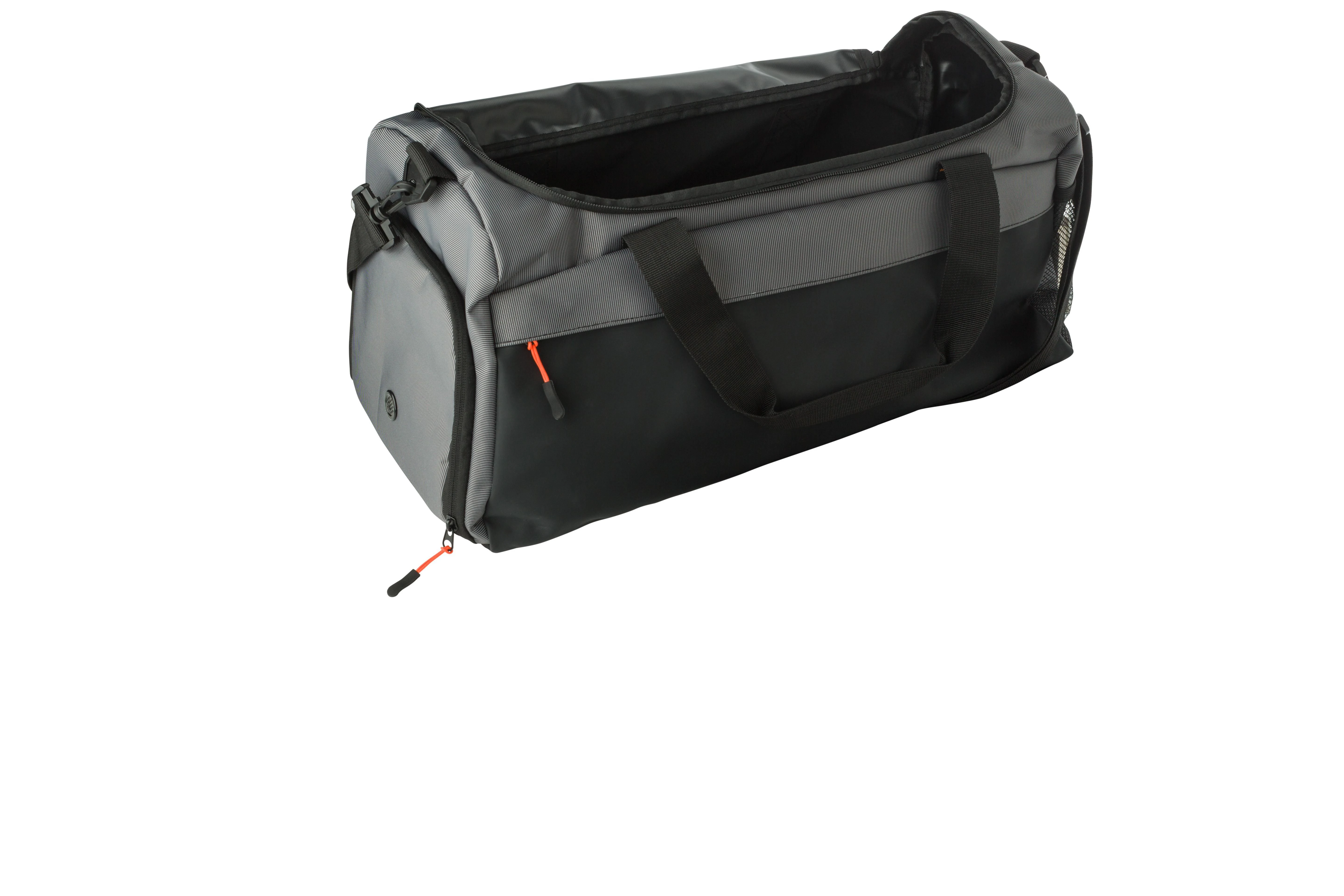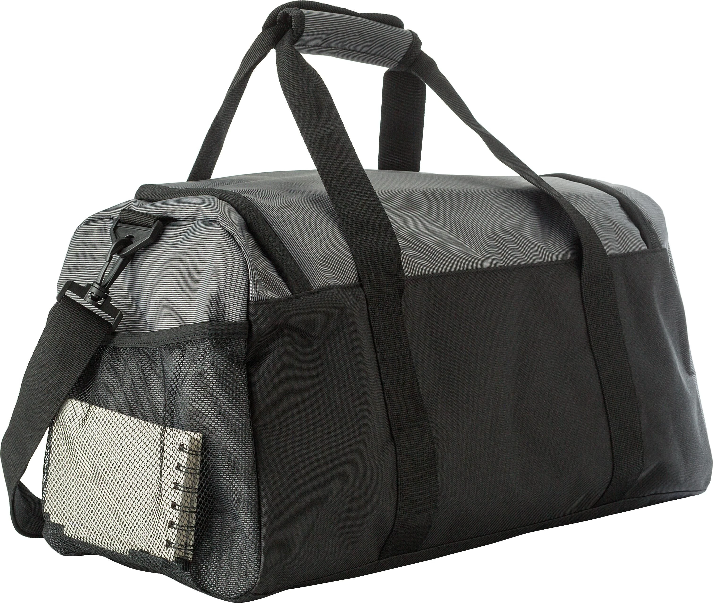 500D Two Tone sportska torba s prednjim džepom na patentni zatvarač, bočni prozračan pretinac za obuću, mrežasti džep na suprotnoj strani, kratke ručke s čičak zatvaranjem, veliki glavni pretinac s ojačanim dnom