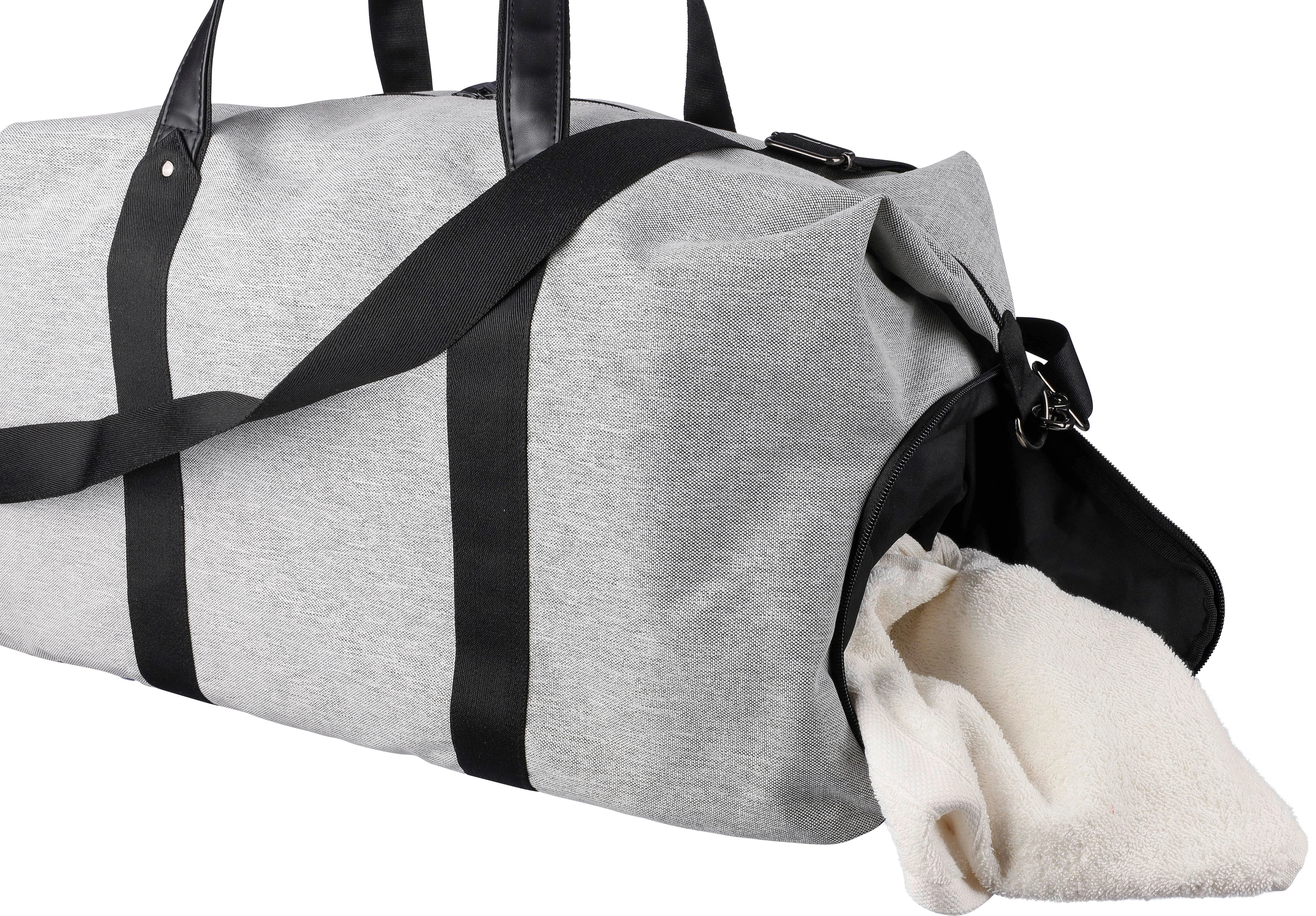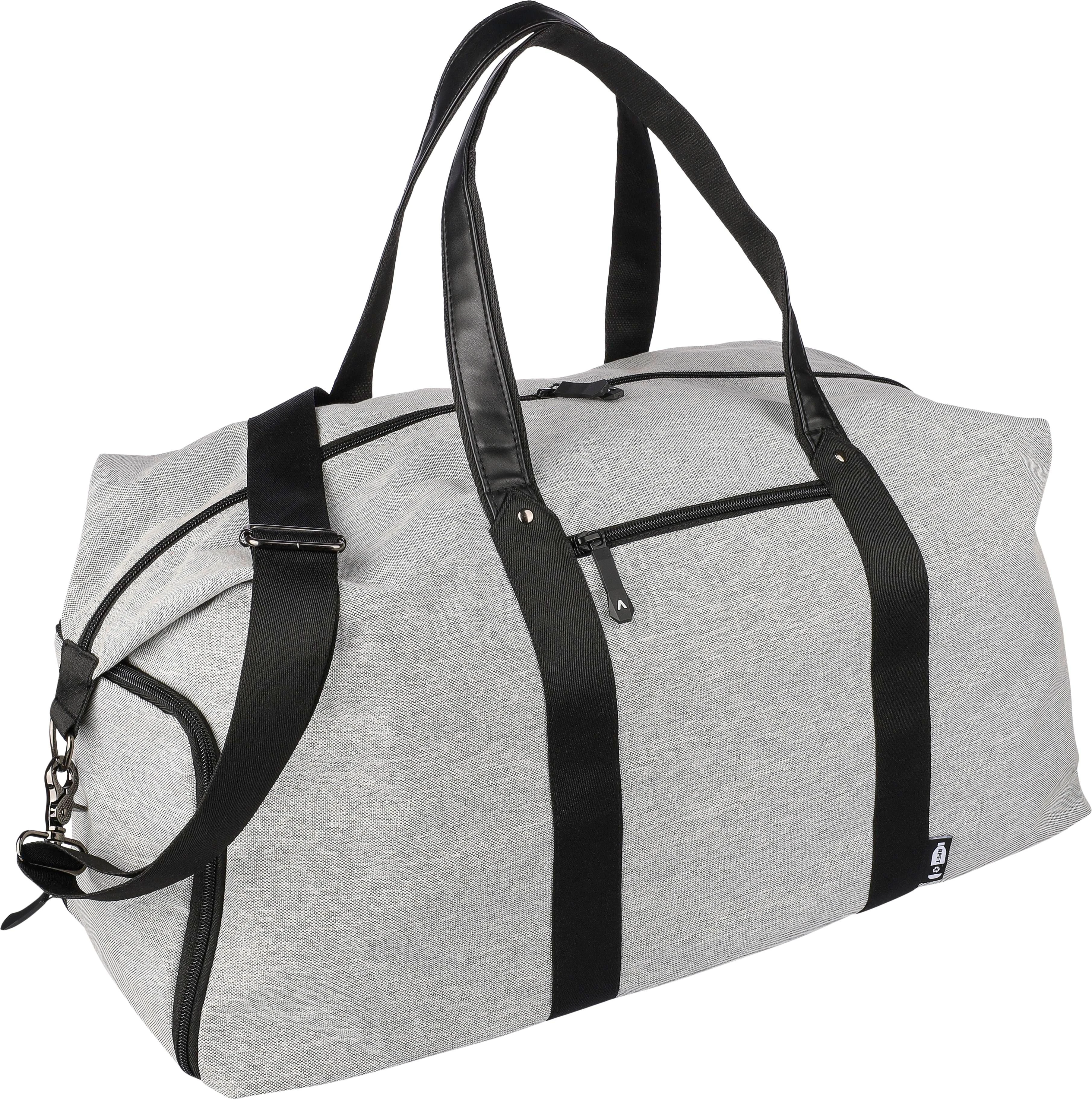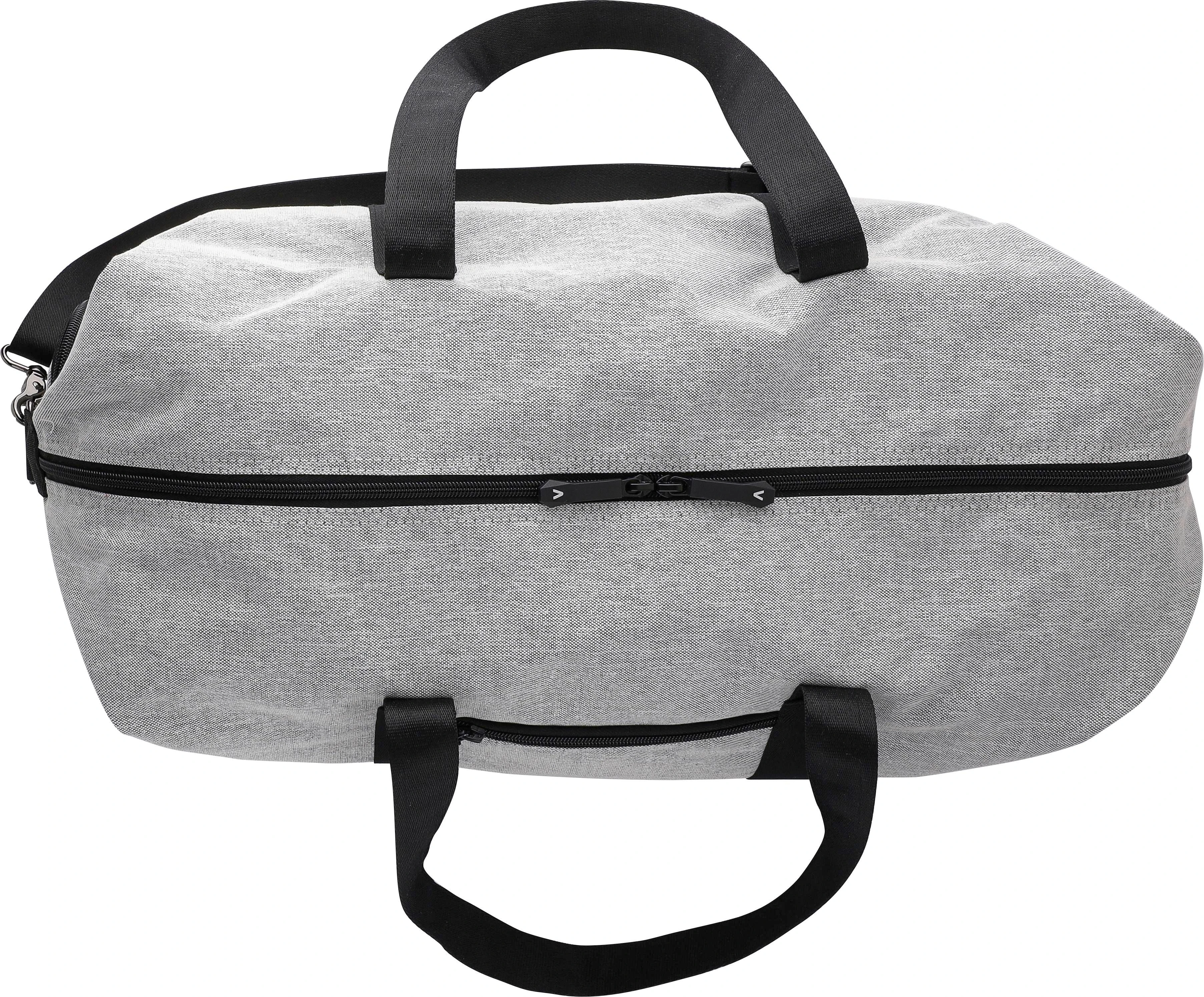 €21.82Sportska torba od 600D recikliranog poliestera s podstavom od 150D PU i detaljima od PU kože, unutarnja pjena debljine 4 mm i PE ploča debljine 1 mm, mali prednji pretinac s patentnim zatvaračem, veliki glavni pretinac i bočni pretinac za obuću, podesivi remen za rame i dvije velike ručke za nošenje, rPET oznaka na prednjoj strani