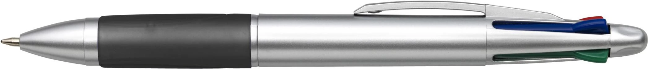 ABS kemijska olovka s gumiranim drškom i četiri boje tinte: crvena, plava, zelena i crna.