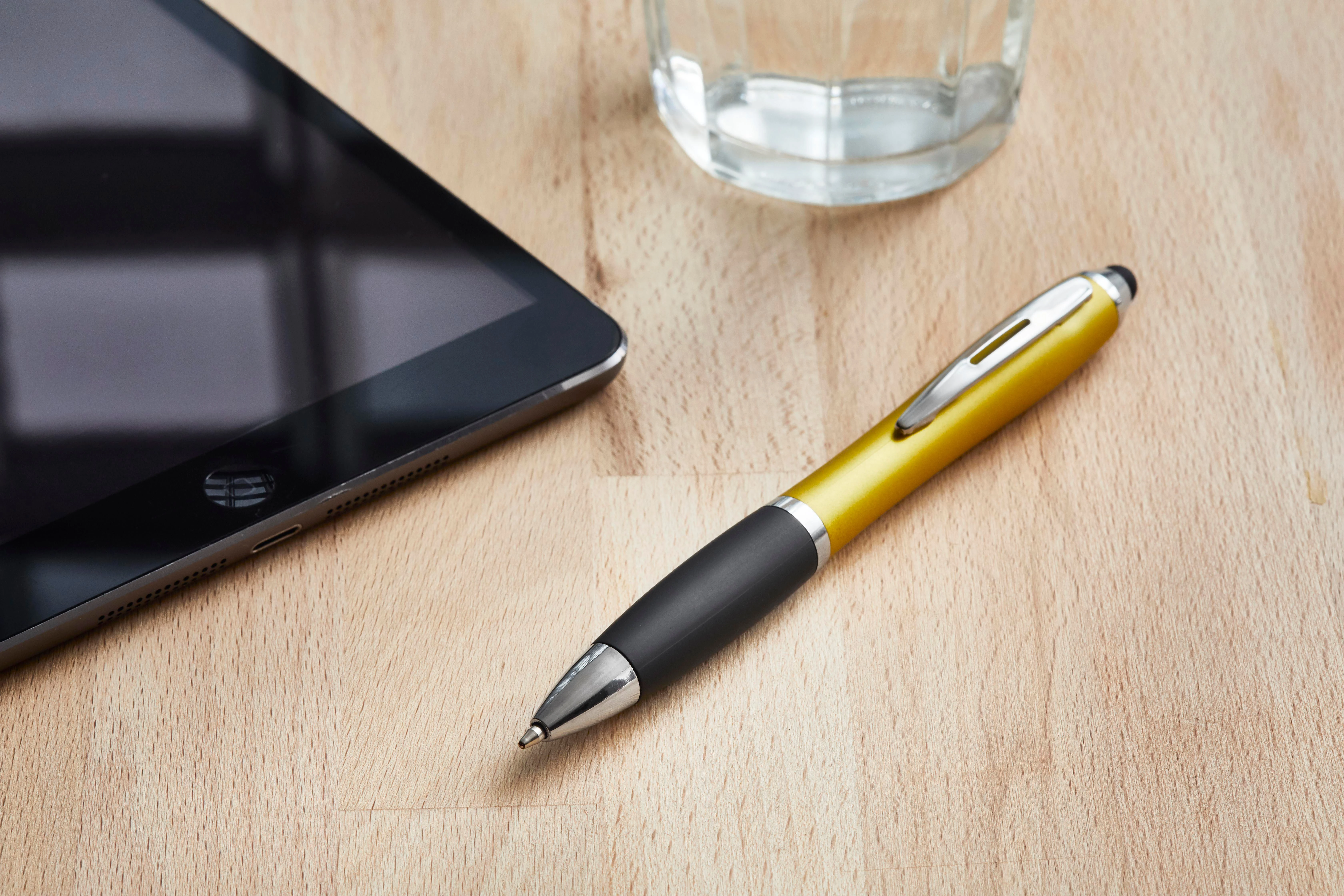 Kemijska olovka od ABS-a i metala s gumenim gripom i gumenim vrhom za kapacitivne ekrane crna tinta