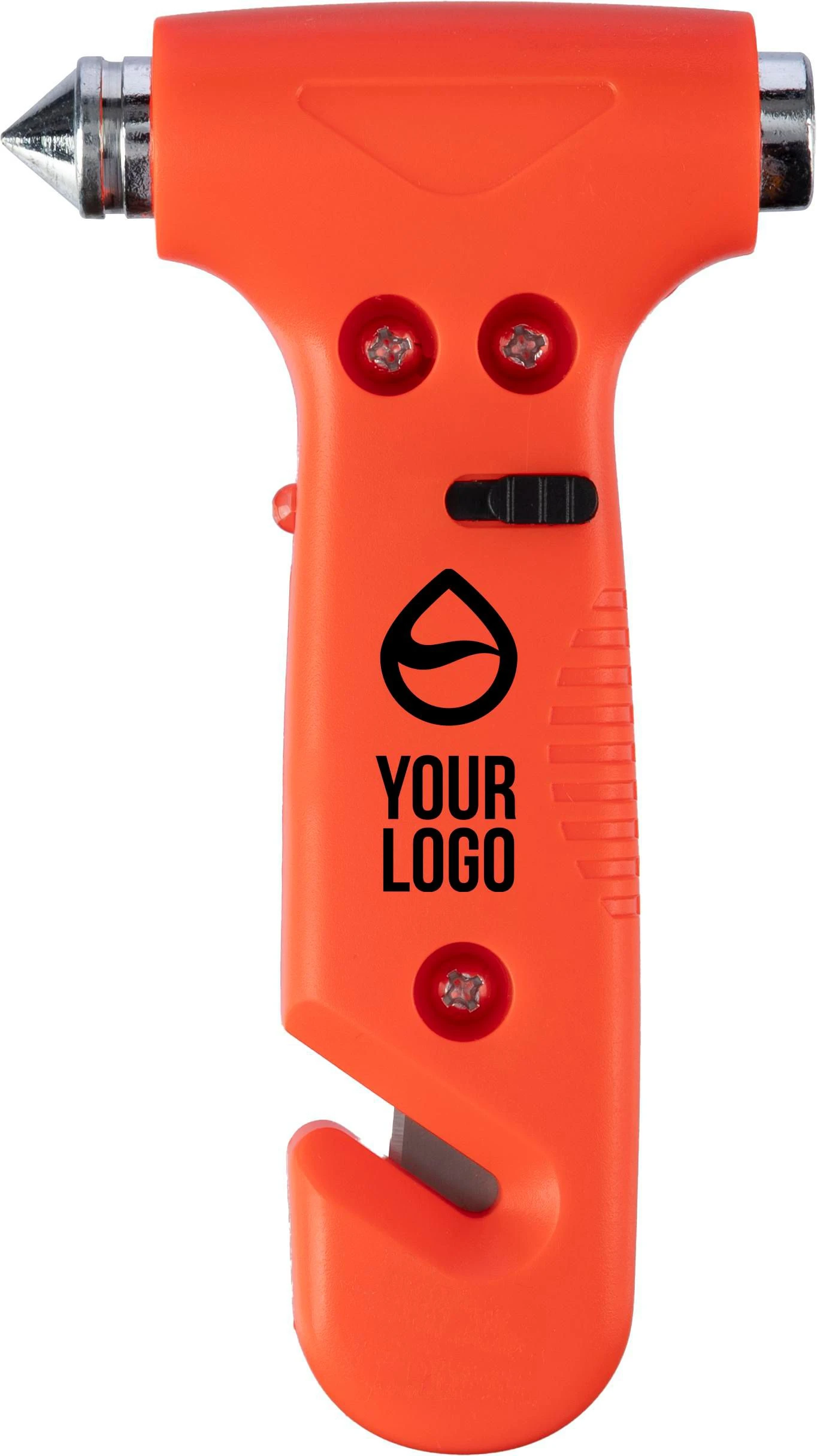 ABS sigurnosni čekić s bijelim LED svjetlom (uključivanje/isključivanje), integriranim rezačem sigurnosnog pojasa i čekićem za razbijanje stakla, čekić zaštićen gumenim vrhom, pojedinačno pakiran u smeđoj kartonskoj kutiji