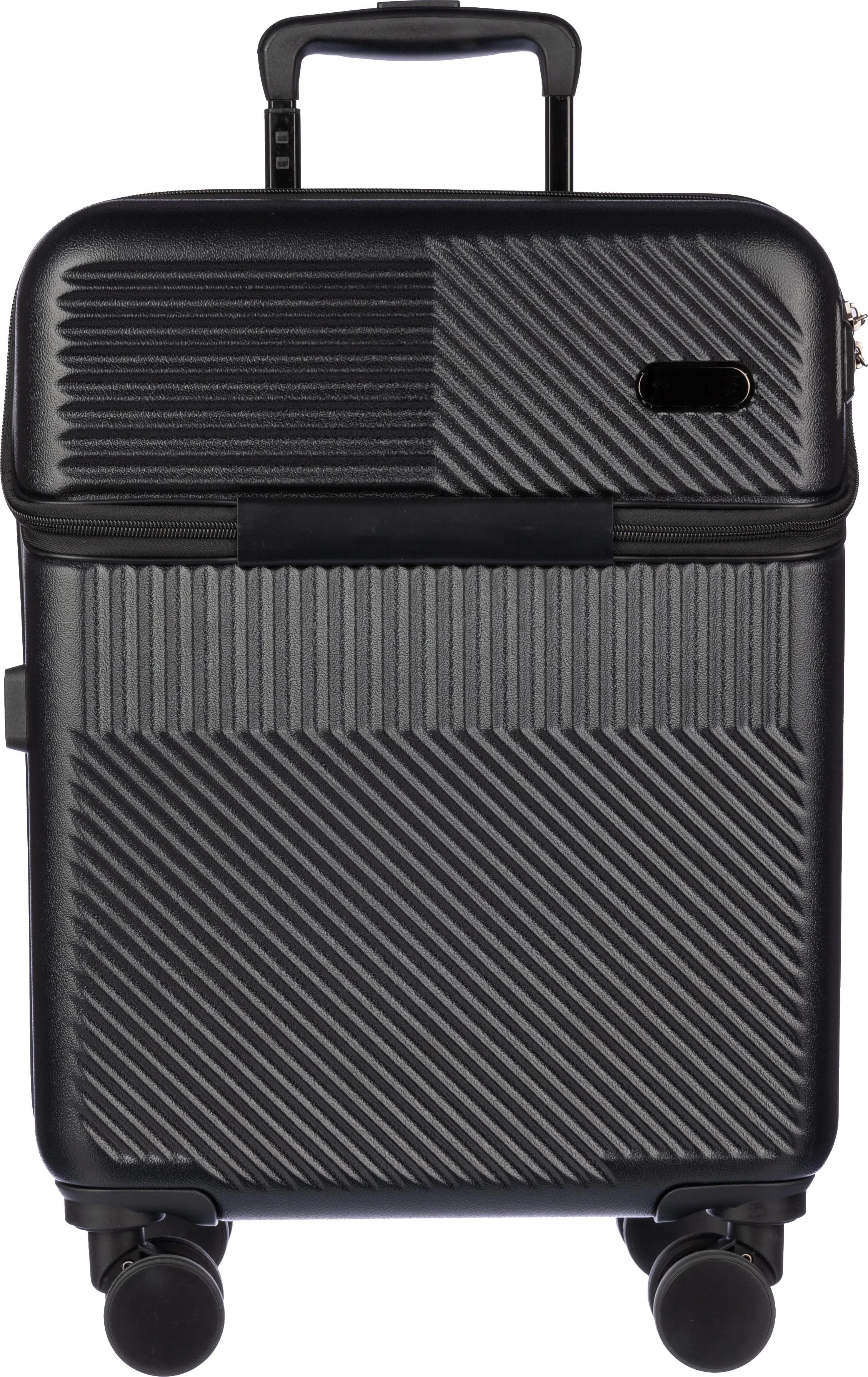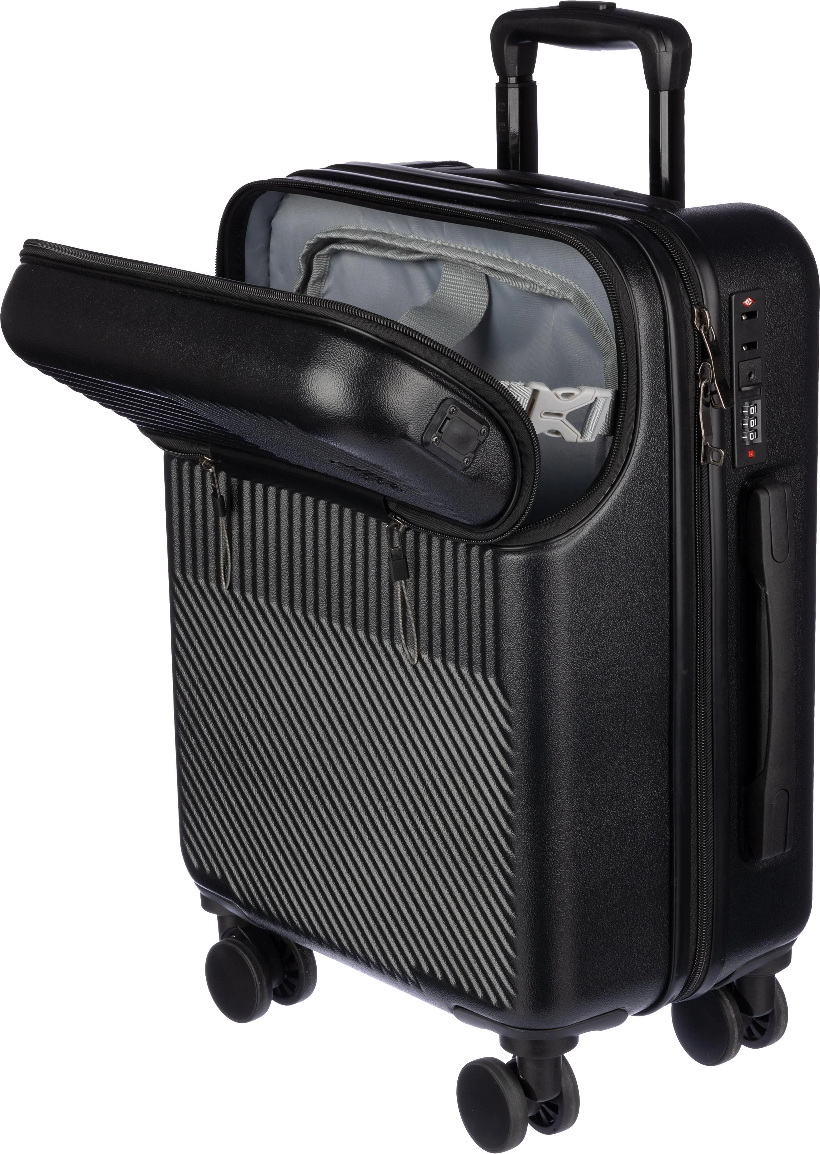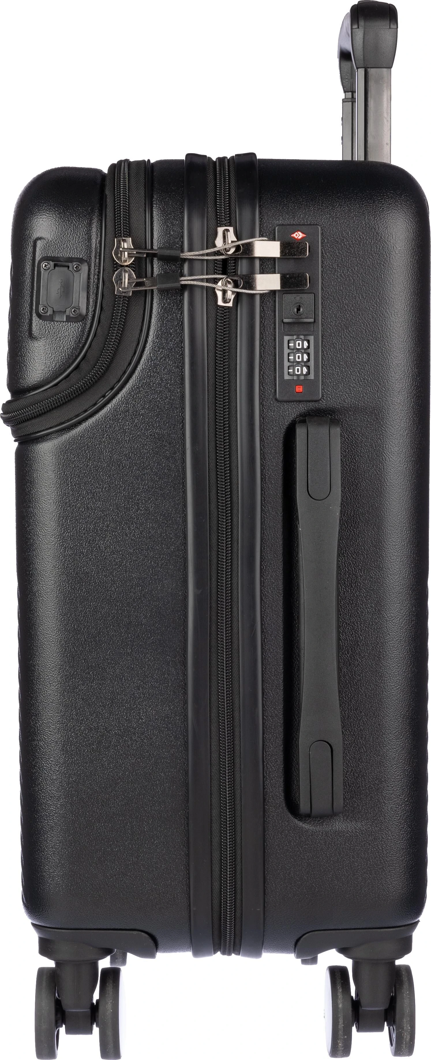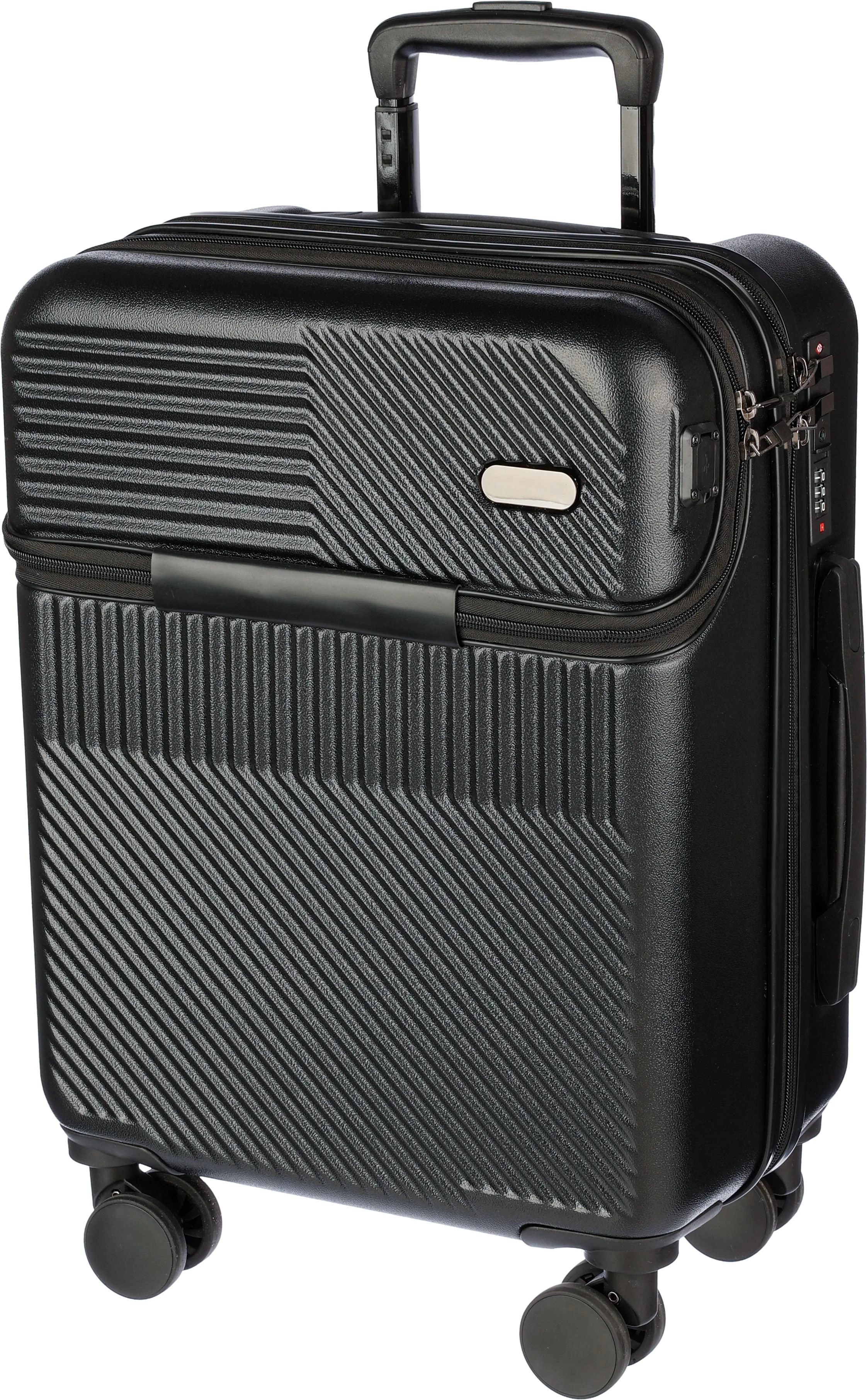 €113.19ABS kofer na kotačima (20 inča) s prednjim džepom na patentni zatvarač za laptop, 8 kotača i sustavom ručke na tri razine. Uključuje brojčanu bravu i odvojenu ploču za lasersko graviranje. S USB priključkom.
