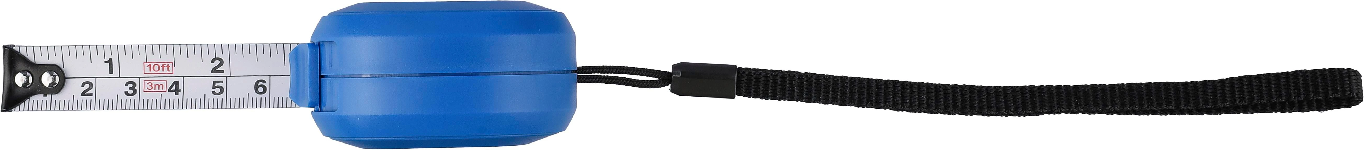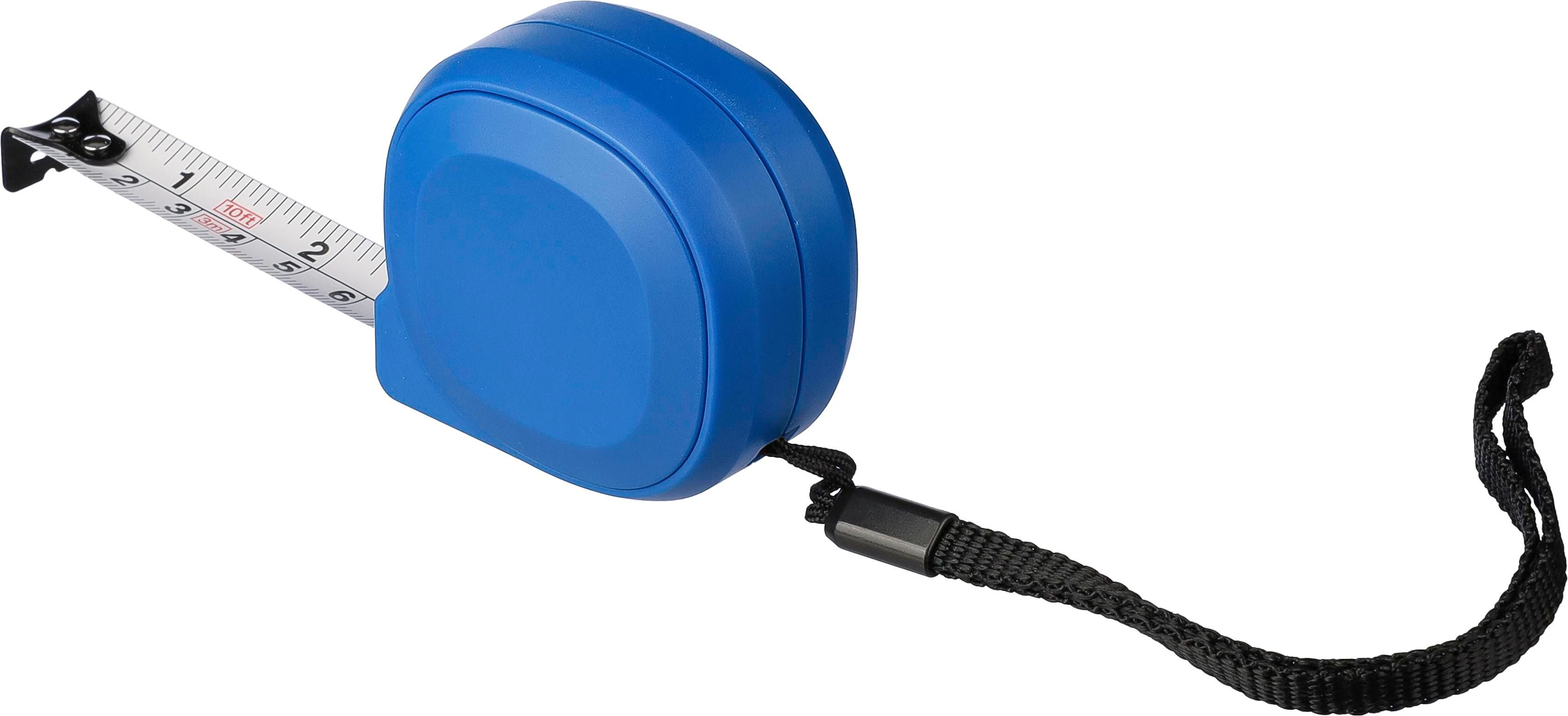 €1.80ABS metar s poliesterskom vezicom za zapešće. Duljina 3 metra. Traka izrađena od metala (16 mm), otisnuta s centimetrima i inčima. Uključuje gumb s bravom. Pojedinačno pakirano u smeđu kartonsku kutiju.