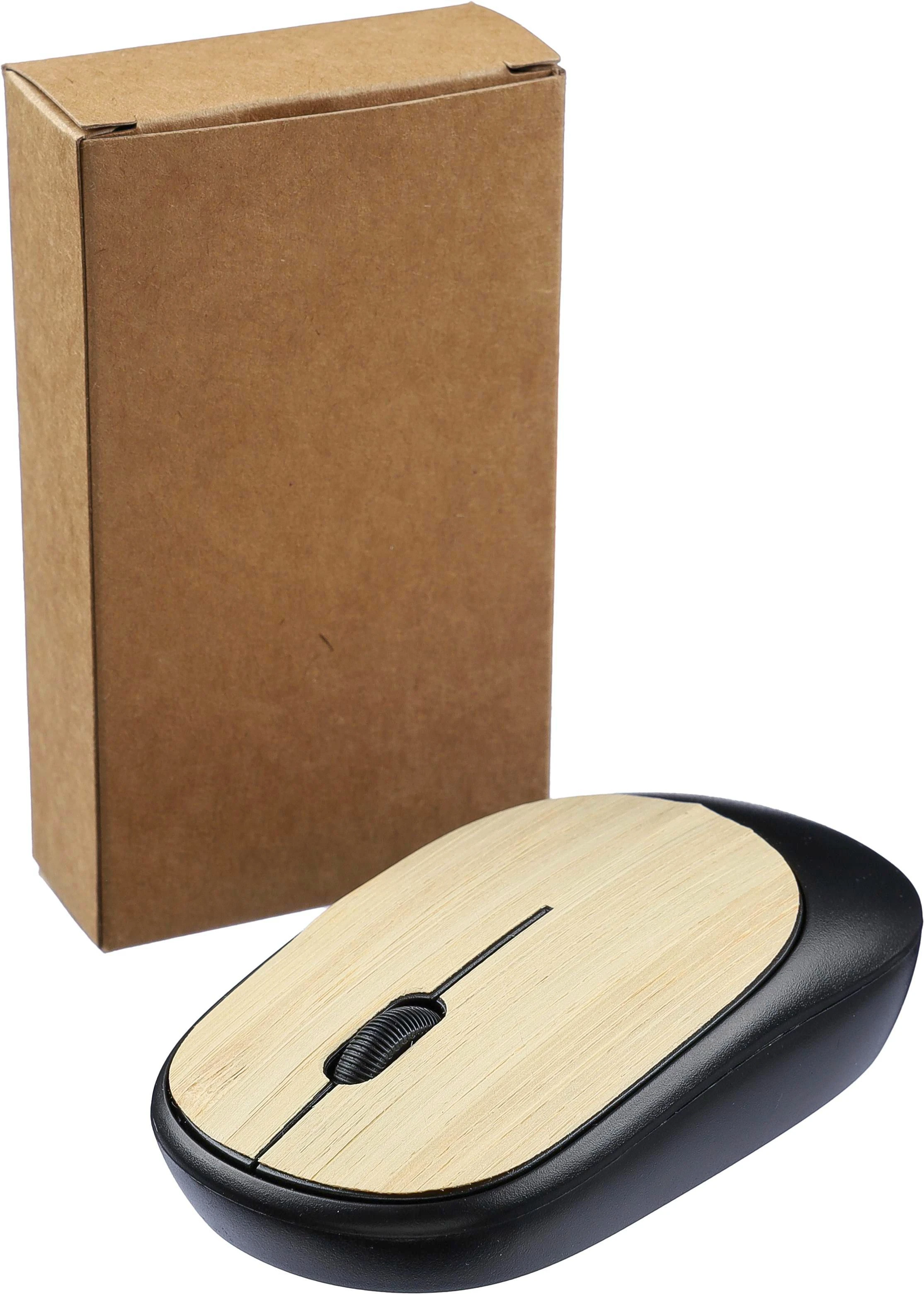 €4.63Bežični miš od ABS-a s bambusovim detaljima, uključuje bateriju, 2,4 GHz s USB prijamnikom i 1.200 DPI, pojedinačno pakiran u smeđu kartonsku kutiju