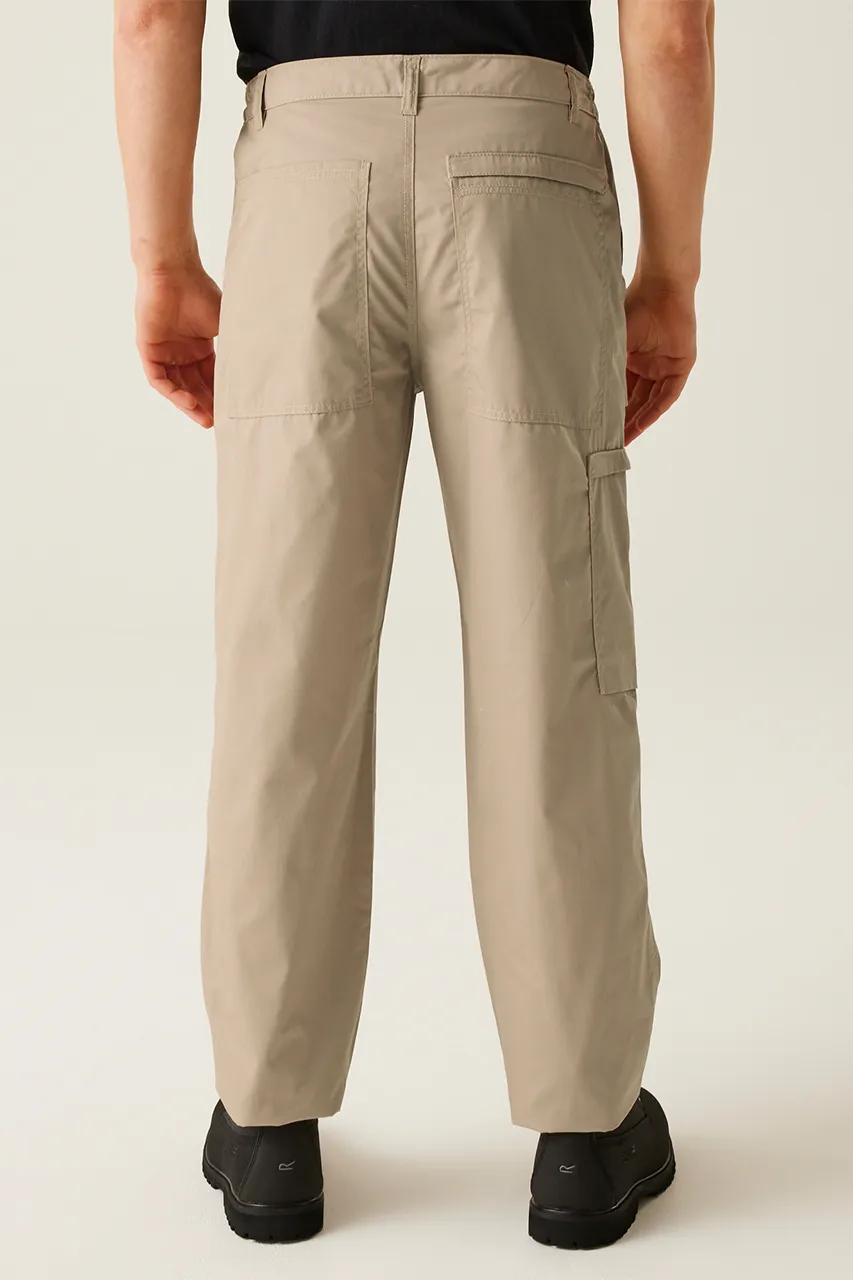 Informacije o materijalu: poliestersko-pamučna tkanina, izdržljiva vodoodbojna obrada, masa tkanine 170 g/m², posebne značajke: djelomično elastičan pojas, ojačanja na koljenima, omče za remen, više džepova sa skrivenim patentnim zatvaračima, dva velika prednja džepa s naborima, desni bočni džep s patentnim zatvaračem i preklopom, dva stražnja džepa od kojih je jedan s patentnim zatvaračem i preklopom, dostupno u kratkoj, standardnoj i dugoj duljini nogavica
