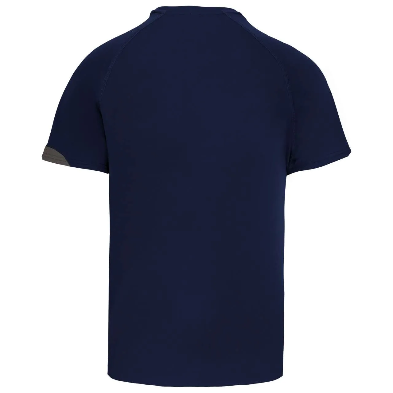 100% polyester Contrast panels Matching topstitch finishing Twin needle finishing at the cuffs and hem