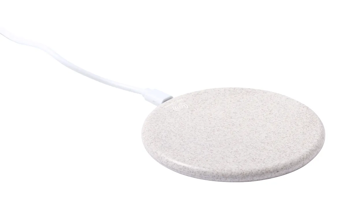 Bežični brzi punjač u kućištu od ekološke plastike od pšenične slame s LED indikatorom punjenja i protukliznom podlogom maksimalni izlaz 2000 mA uključuje USB kabel