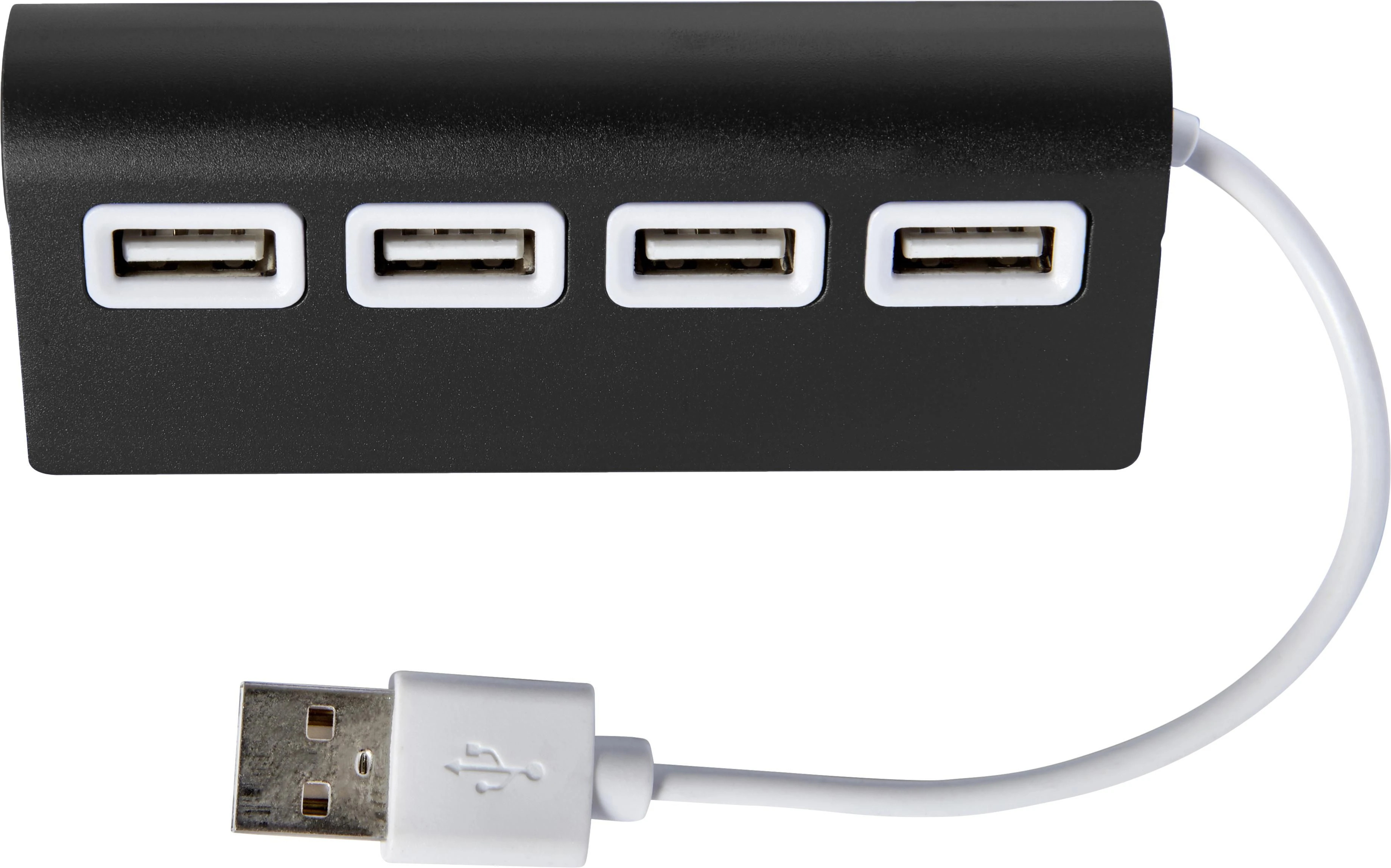 Aluminijski USB hub s četiri priključka. USB verzija 2.0, izlaz 5V.