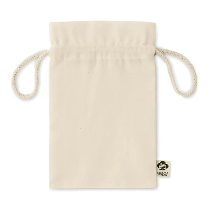 €0.80Mala poklon vrećica s vezicom od organskog pamuka. Veličina otprilike 14x22 cm. 105 gr/m².