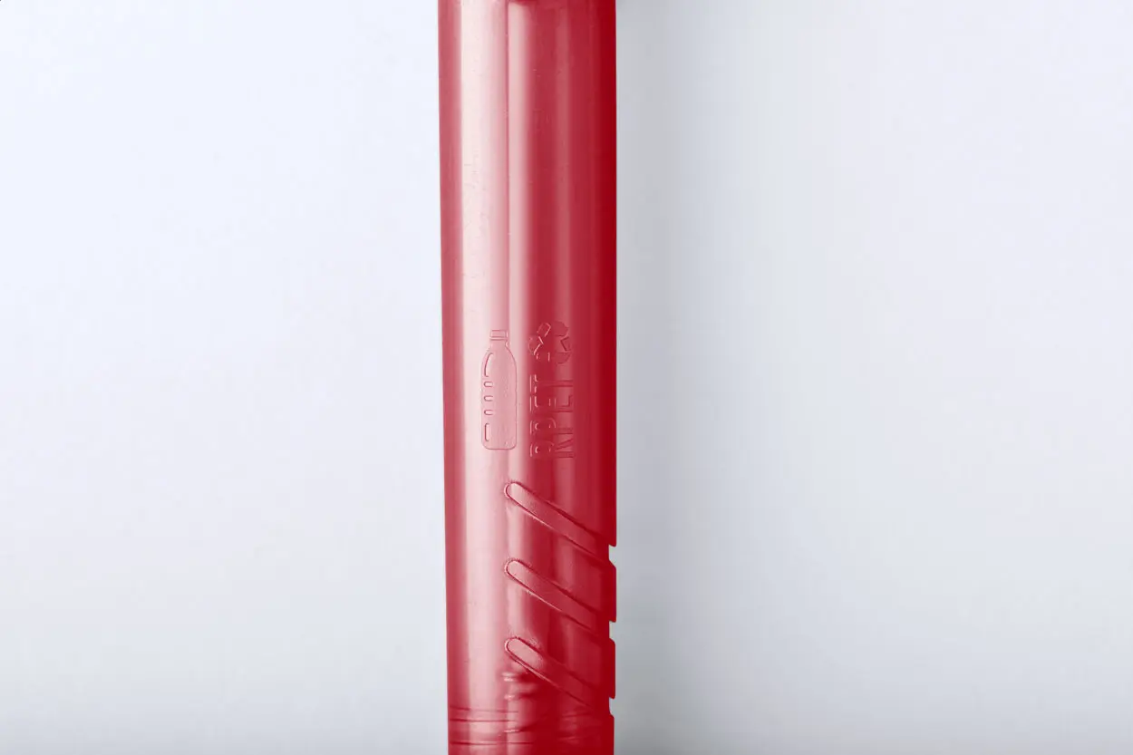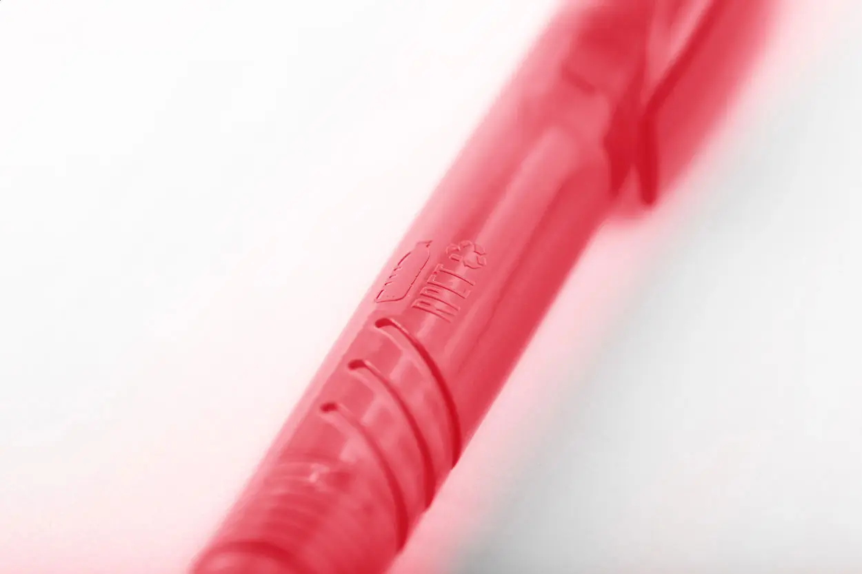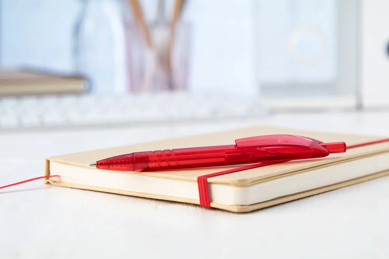Transparentna kemijska olovka od RPET plastike. S plavim punjenjem.