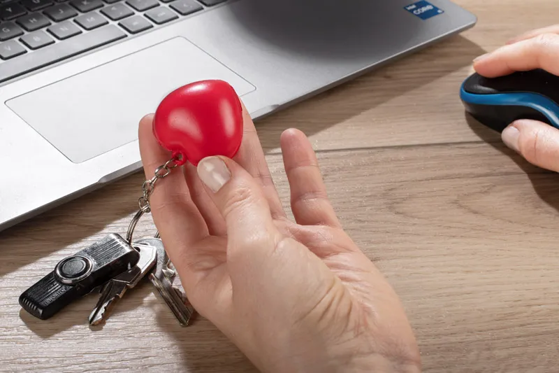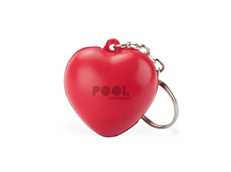 Antistres privjesak za ključeve u obliku srca izrađen od mekanog materijala, pogodan za stiskanje
