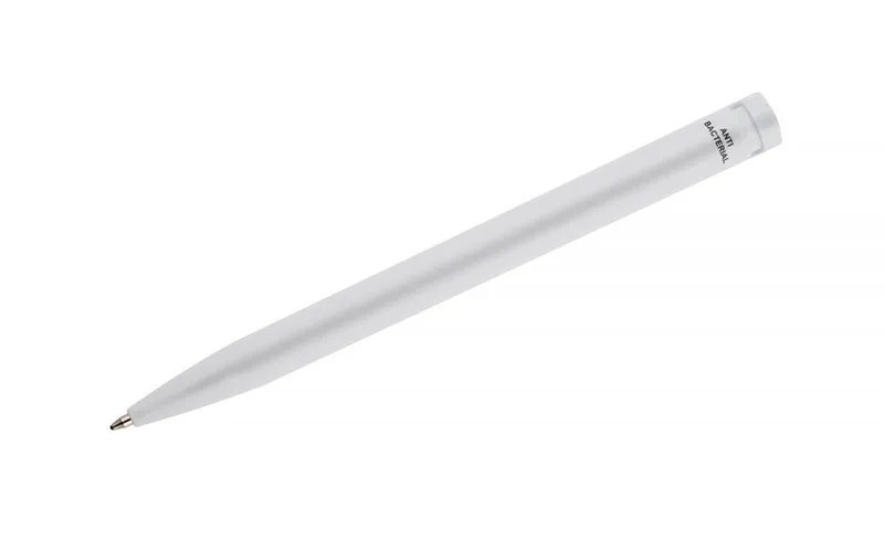 €0.44NO-BUGS olovka izrađena je od posebnog antibakterijskog materijala obogaćenog srebrnim ionima koji smanjuju taloženje i rast bakterija na površini do 99% tijekom cijelog vijeka trajanja olovke bijela olovka na uvlačenje s plavim punjenjem