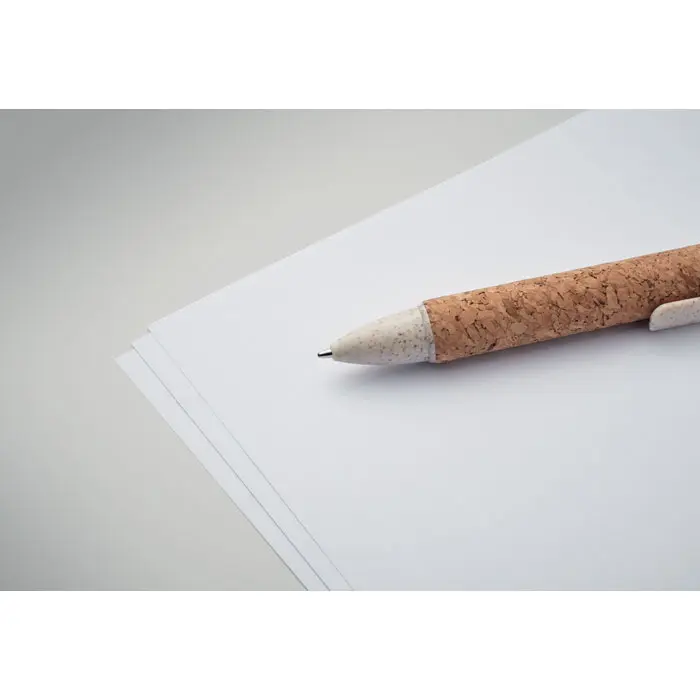 €0.51Kemijska olovka s četiri boje s gumbom, tijelo od pluta, dijelovi od pšenične slame (50%) i ABS plastike (50%)