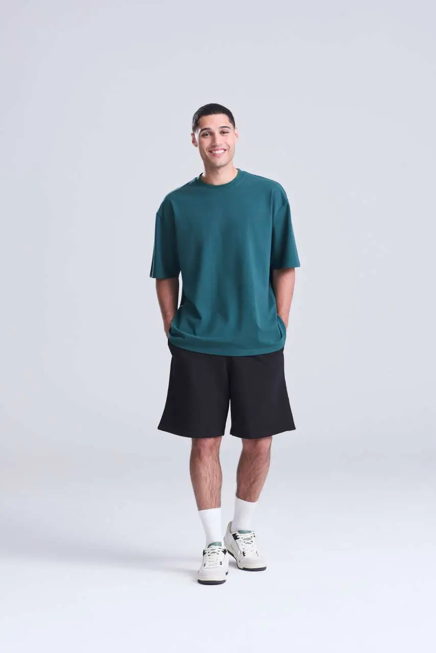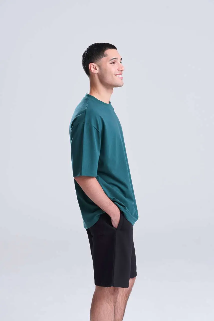 €9.0748% reciklirani pamuk, 47% reciklirani poliester, 5% elastan, prevelika, kvadratna forma, detalji dvostrukog šava, luksuzan osjećaj na dodir, samo oznaka veličine, bočni šavovi, traka na stražnjoj strani vrata, okrugli izrez, rukavi ušiveni u tijelo, ovaj proizvod se ne boji dodatno, budući da je pamuk recikliran, ponekad se u tkanini vide tragovi njegovog prethodnog života što svaki komad čini jedinstvenim.