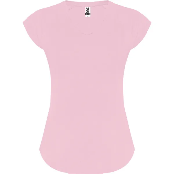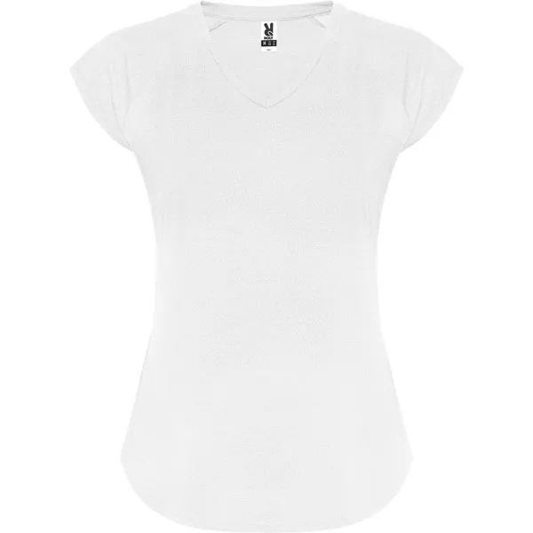 Prozračna i elastična tehnička majica s blago prilagođenim krojem i rukavima raglan kroja. Završna obrada poput breskve. V-izrez s trakom za vrat u odgovarajućem materijalu. Zaobljeni rub.