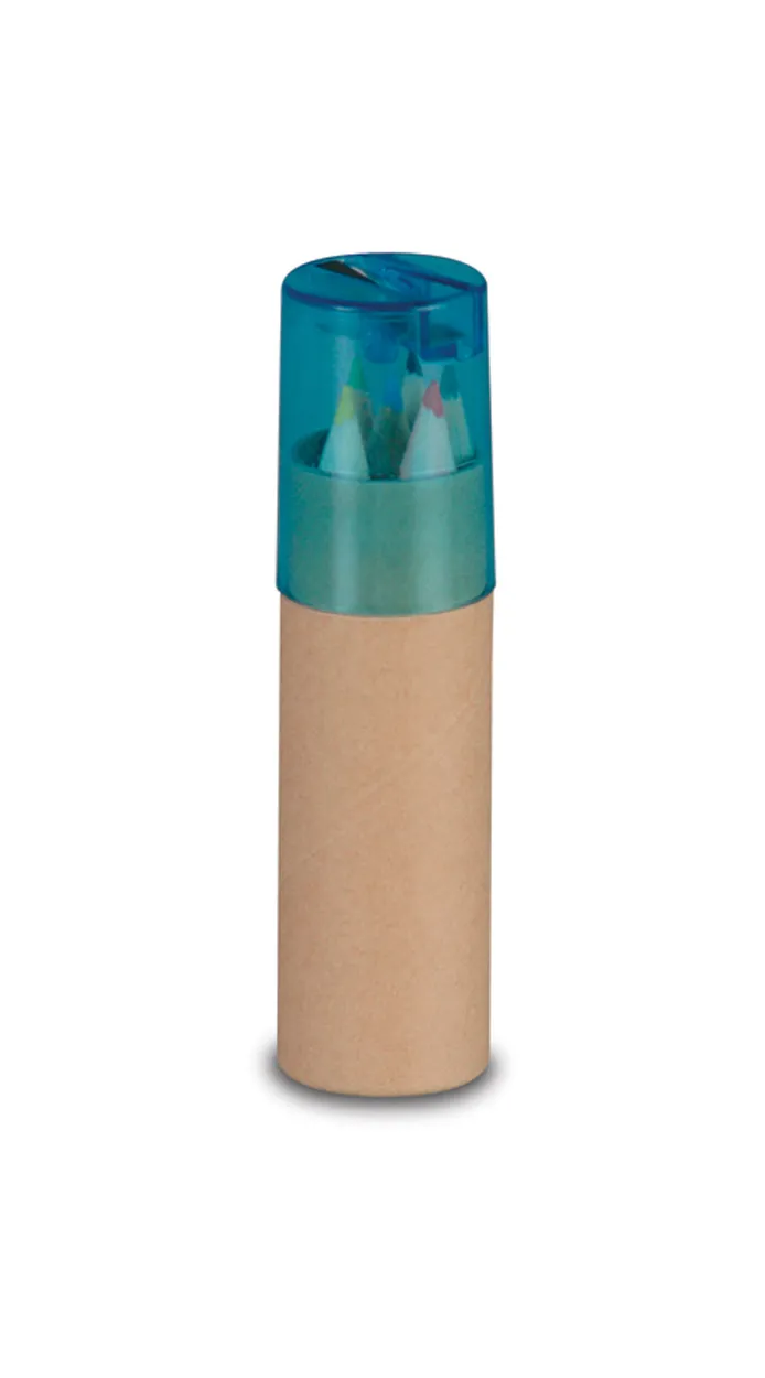 6 komada olovaka u boji u okrugloj kartonskoj kutiji s oštračem.