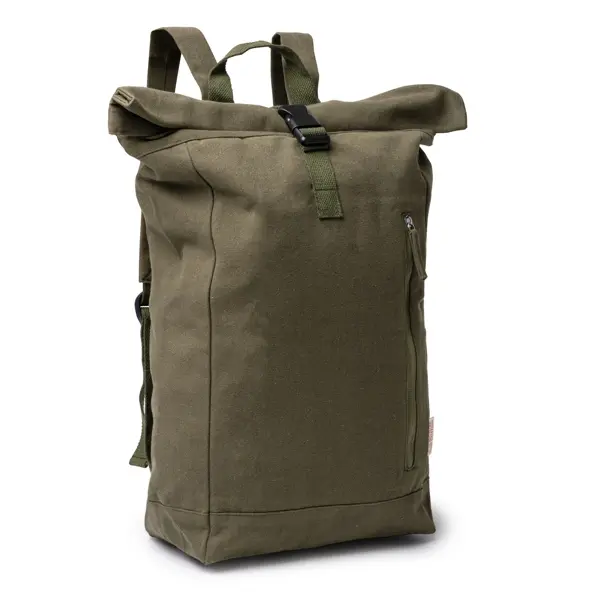 €8.56Ruksak od recikliranog pamuka 370 g/m² s glavnim pretincem velikog kapaciteta i proširivim otvorom s patentnim zatvaračem i regulatorom, prednjim džepom s patentnim zatvaračem i bočnim džepom, kapacitet 25 L