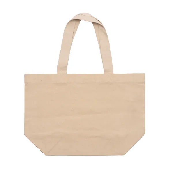 Velika torba od recikliranog pamučnog platna od 330 gsm. Pojačane ručke dužine 70 cm.