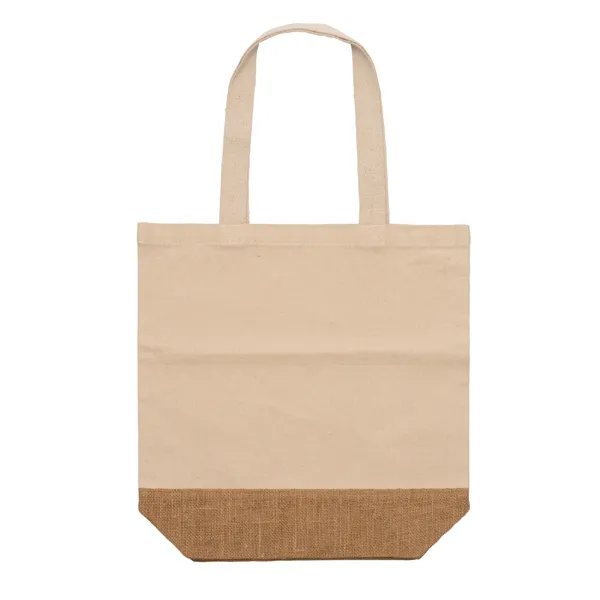 Torba od recikliranog pamuka od 330 gsm i prirodnog jute. Ručke duge 70 cm.