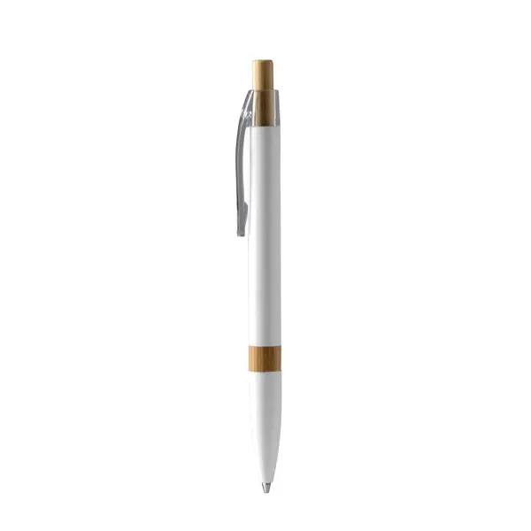 Olovka s tijelom od recikliranog aluminija. Klip i detalji od bambusa. Plava tinta.