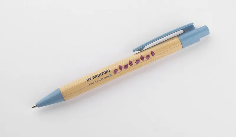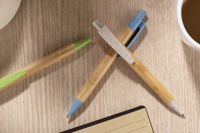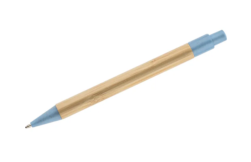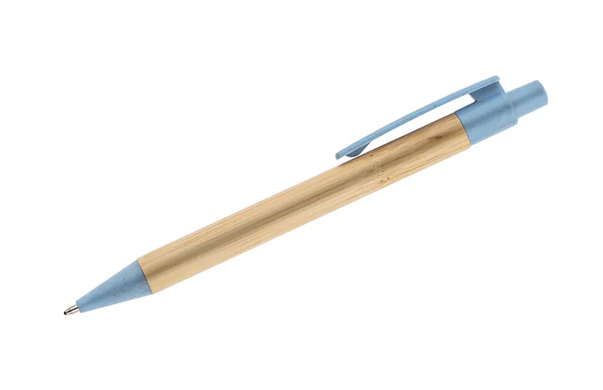 €0.53BAMMO kemijska olovka od bambusa s plastičnim dijelovima s 50% udjela slame, na izvlačenje, plavi uložak