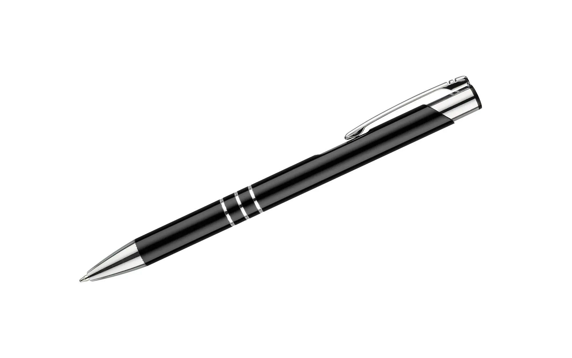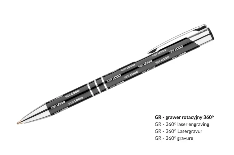 €0.71Popularna metalna kemijska olovka s metaliziranom površinom. Radi se o automatskoj kemijskoj olovki s 3 prstena. Pakirana pojedinačno u polietilensku vrećicu. Logo se može gravirati na tijelo olovke.
