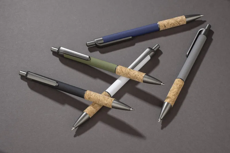 KUBOD kemijska olovka je klasični model s jednostavnim, elegantnim oblikom, idealan za brendiranje. Aluminijsko tijelo prekriveno je mat soft-touch premazom za veću udobnost pri korištenju. Prirodni pluta na području za držanje privlači pažnju i izdvaja proizvod od standardnih modela. Metalni plastični akcenti dodaju moderni dodir. Olovka ima automatski mehanizam i dolazi s plavim X20 tipom punjenja (zamjenjivo, nije dostupno u našoj ponudi).