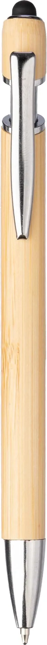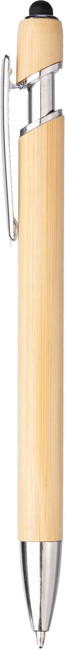 Kemijska olovka od bambusa s vrhom za touchscreen i metalnim klipom plava tinta