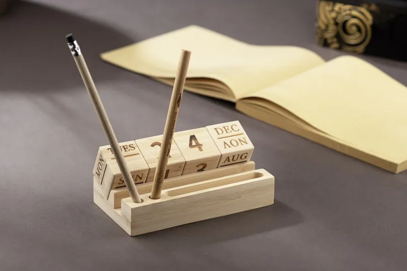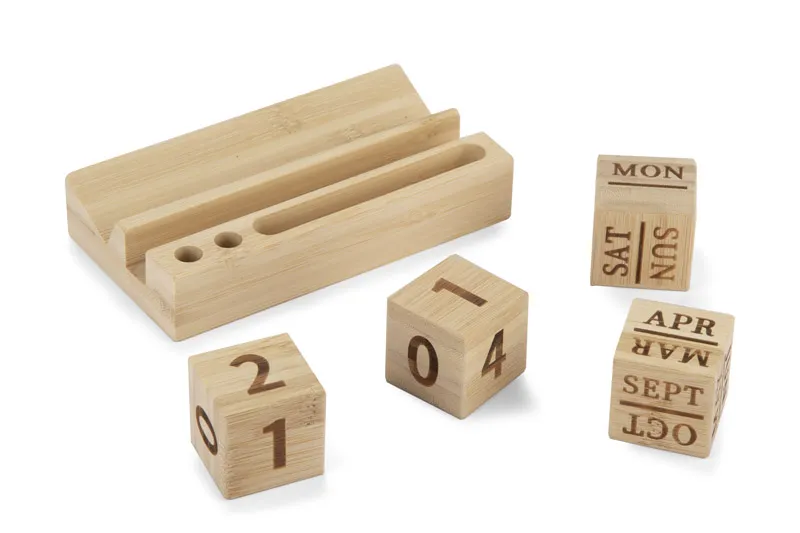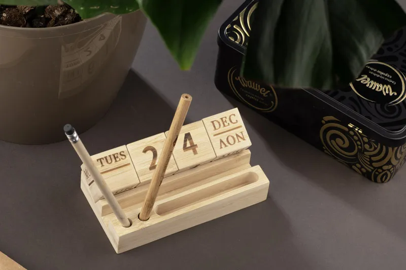 NEN je vječni kalendar izrađen u potpunosti od prirodnog bambusa, namijenjen dugotrajnoj upotrebi. Kalendar sadrži blokove od bambusa koji prikazuju dan u tjednu, datum i mjesec. Također može služiti kao praktični stolni stalak, s prostorom za pisaće alate, male uredske pribore i držač za telefon. Njegova funkcionalnost i estetika čine ga izvrsnim promotivnim gadgetom za ured. NEN je idealan za personalizirani korporativni poklon ili dekorativni predmet za radni prostor.