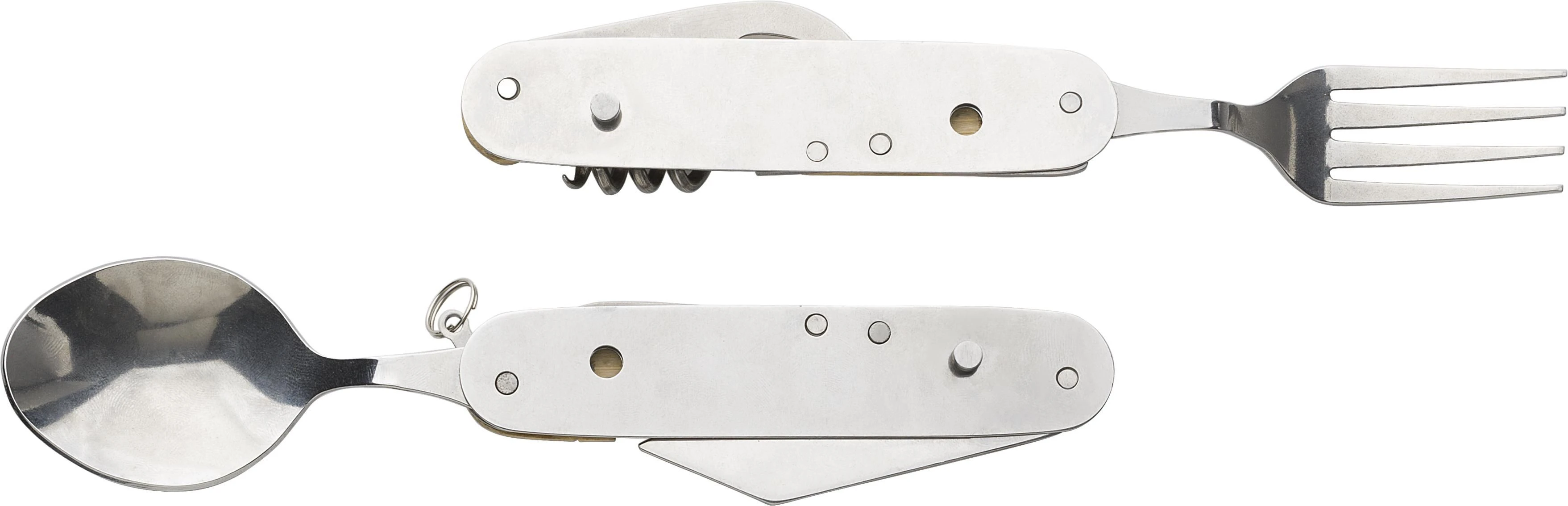 Višenamjenski pribor za jelo od bambusa (žlica, vilica, nož, otvarač za boce, manji nož), pribor se može razdvojiti za korištenje u obje ruke, pojedinačno pakiran u smeđu kartonsku kutiju