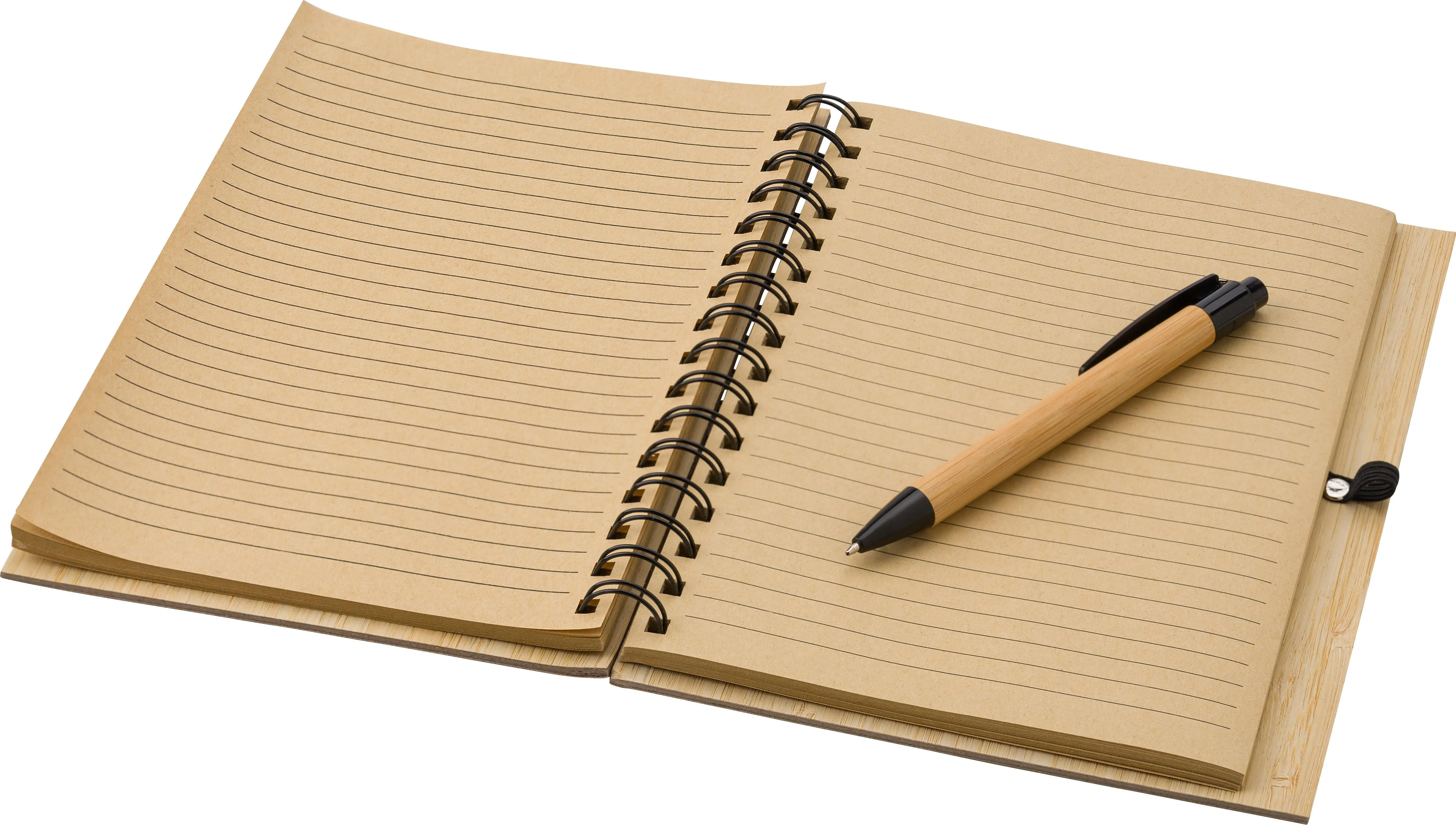Bamboo notebook A5 with 80 lined pages including bamboo ballpoint pen with ABS top and tip. The paper in this notebook is FSC® Mix certified. Blue ink.