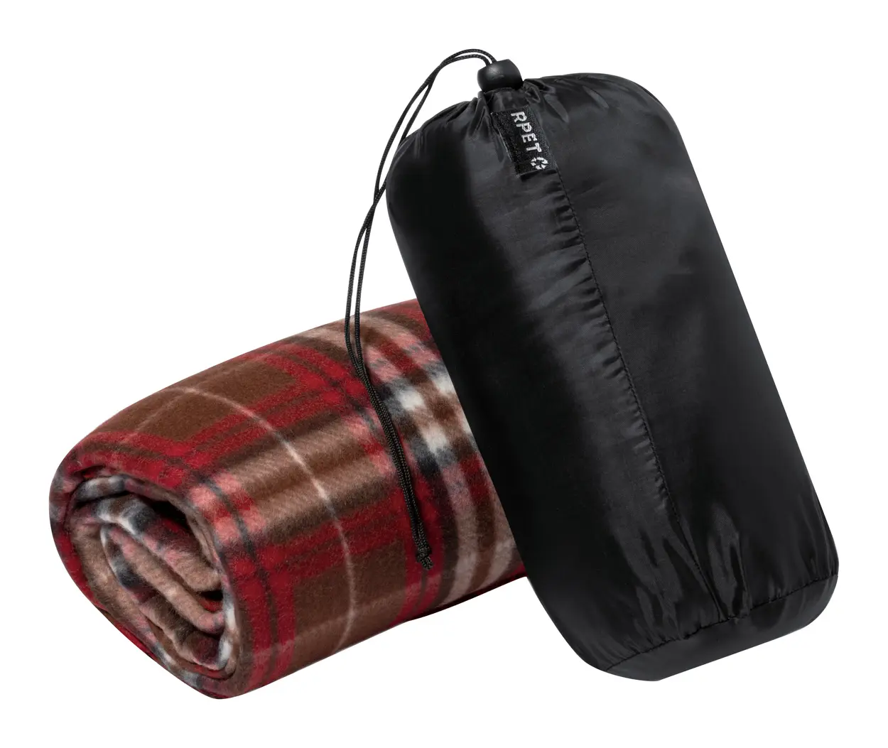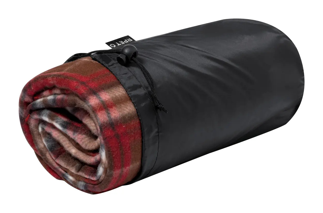 RPET polar fleece deka s kariranim uzorkom u torbi za nošenje, RPET poliester 200 g/m²