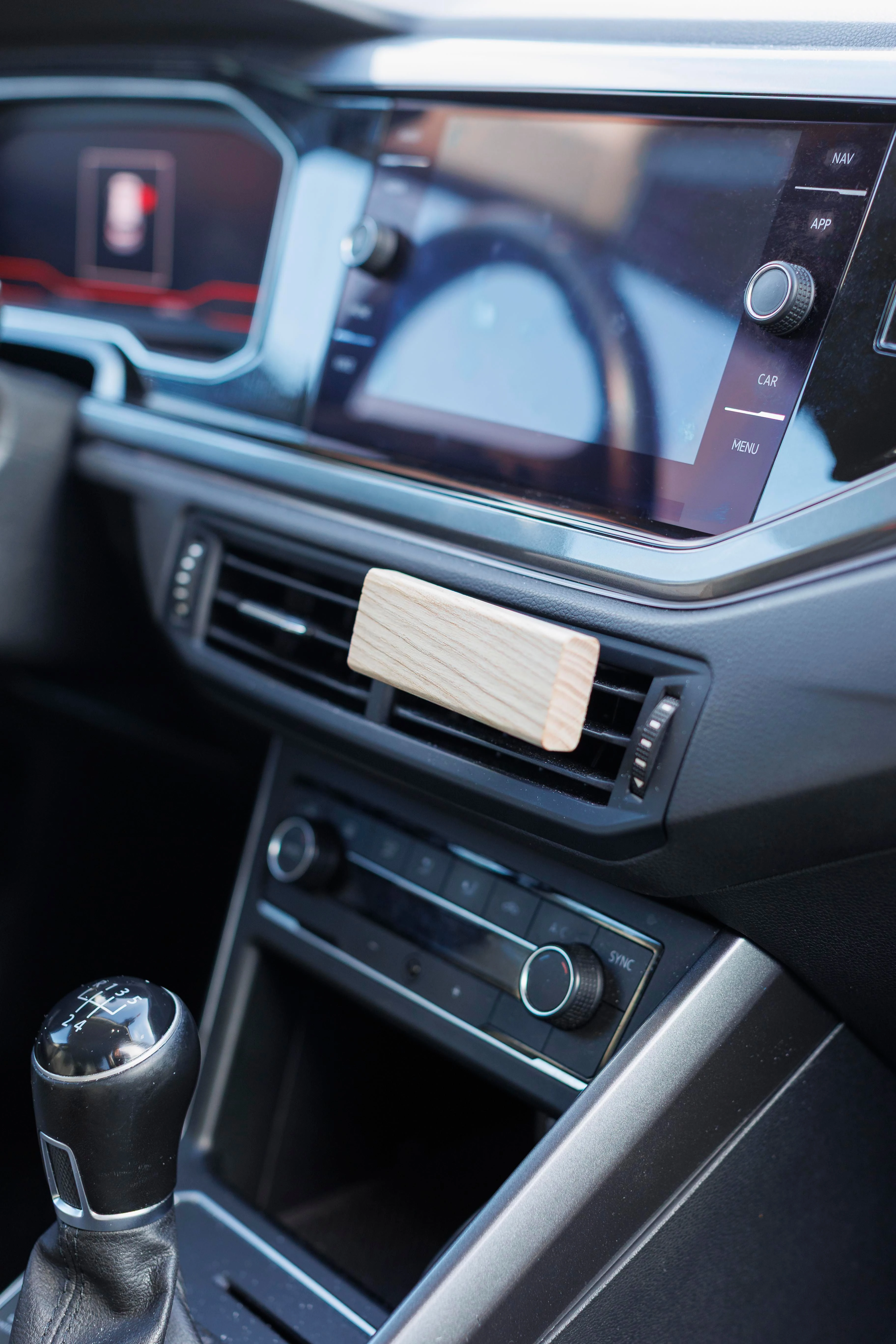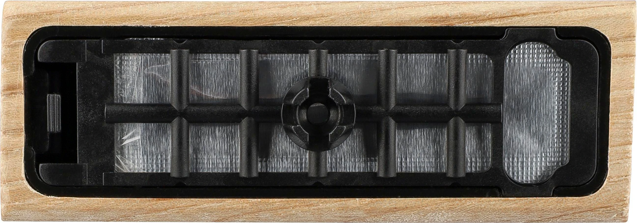 Osvježivač za automobil od bukovog drva u prirodnoj boji s ukupno 2 x 3 g mirisa sandalovine bez alkohola, jedan miris je unaprijed stavljen u osvježivač, a jedno punjenje je odvojeno u kutiji, ABS klip na stražnjoj strani za pričvršćivanje na ventilaciju, pojedinačno pakirano u smeđoj kartonskoj kutiji s ilustracijom