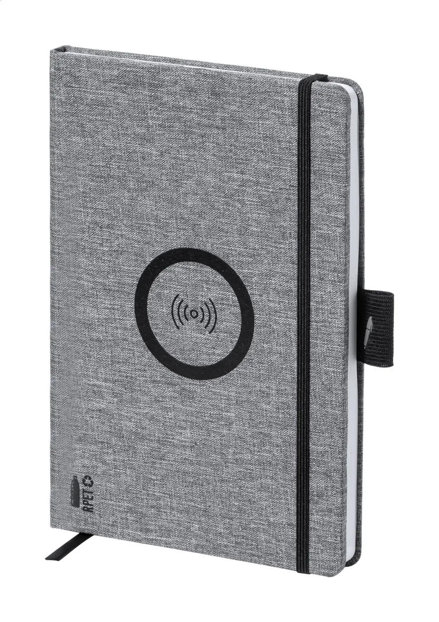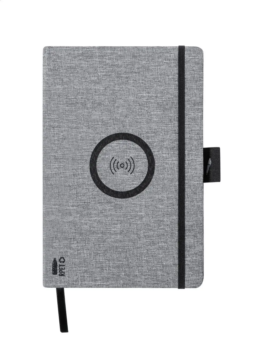 €28.86Bilježnica s koricama od RPET poliestera s ugrađenim bežičnim brzim punjačem (10W) i 80 liniranih listova A5 format uključuje USB kabel za punjenje 300D RPET poliester