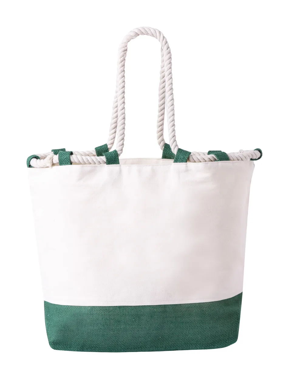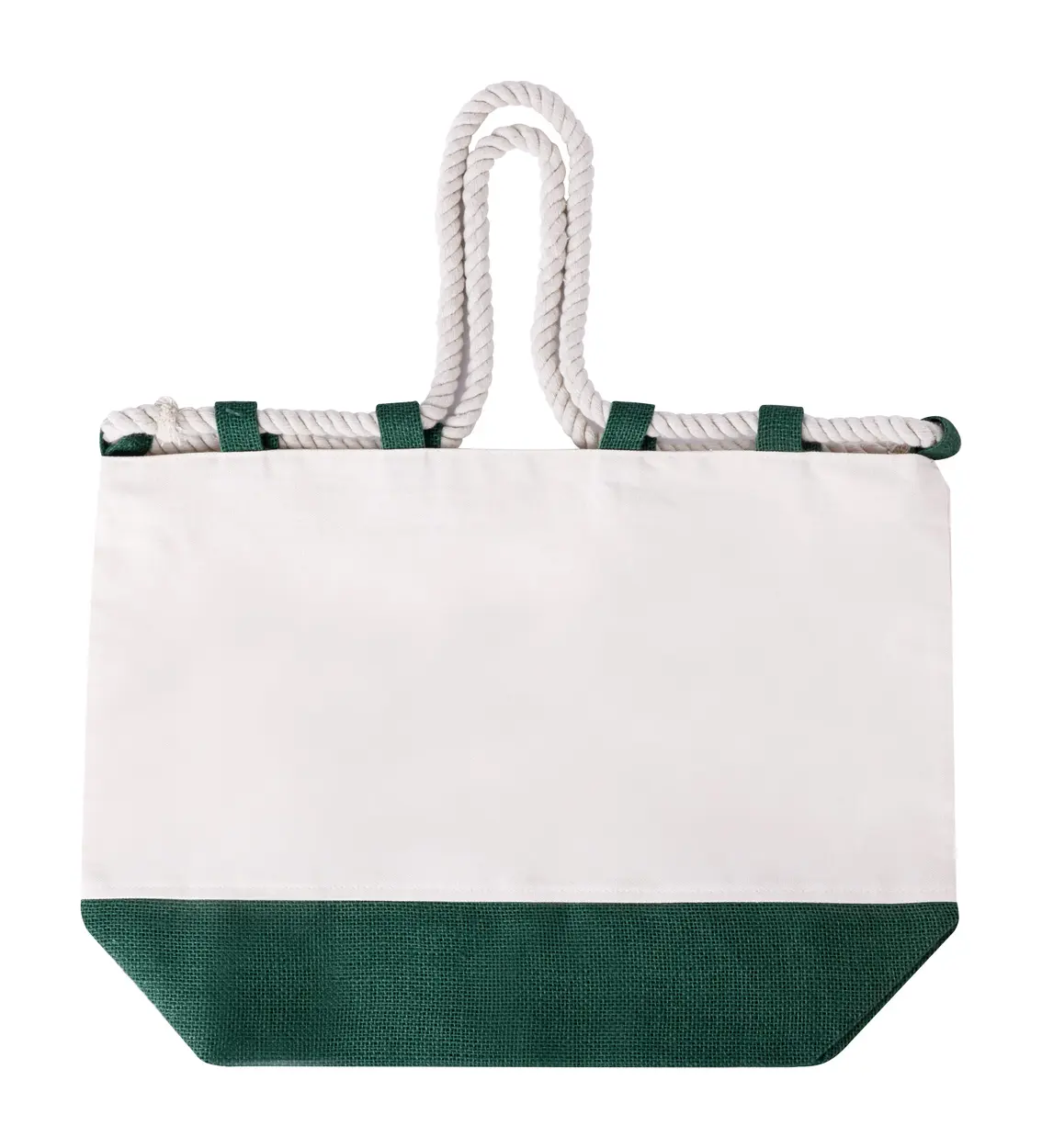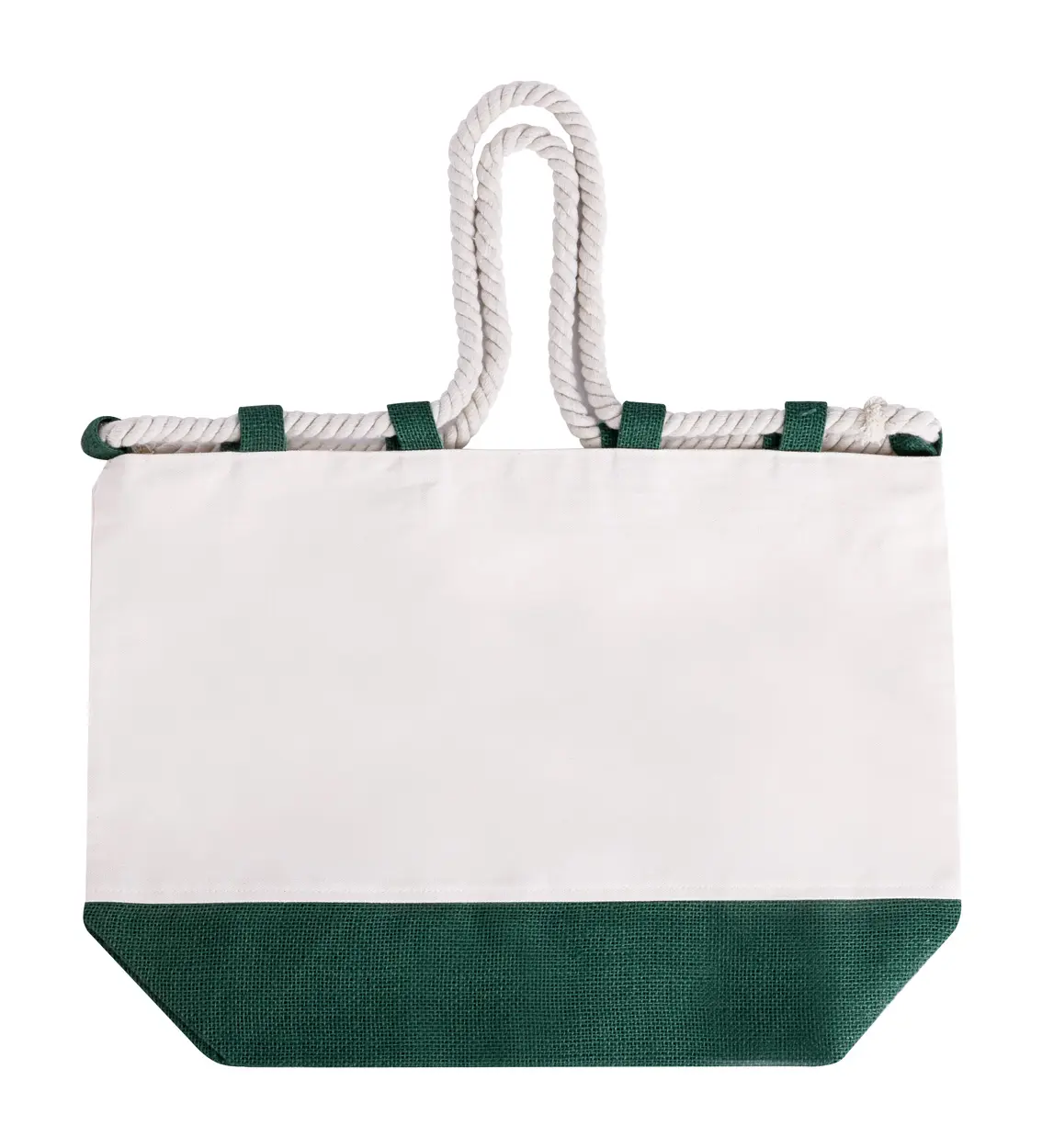 Dvobojna plažna torba od jute i pamuka s ručkama od pletene užadi, 280 g/m².