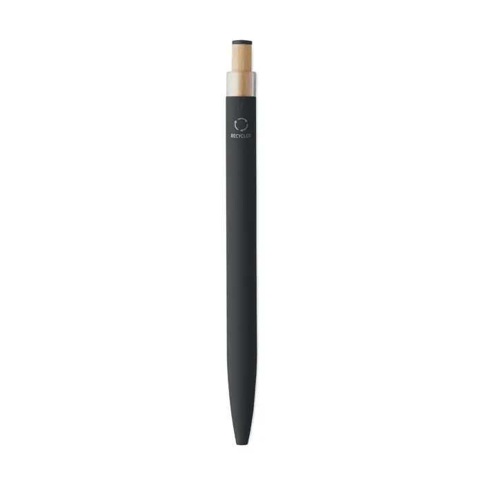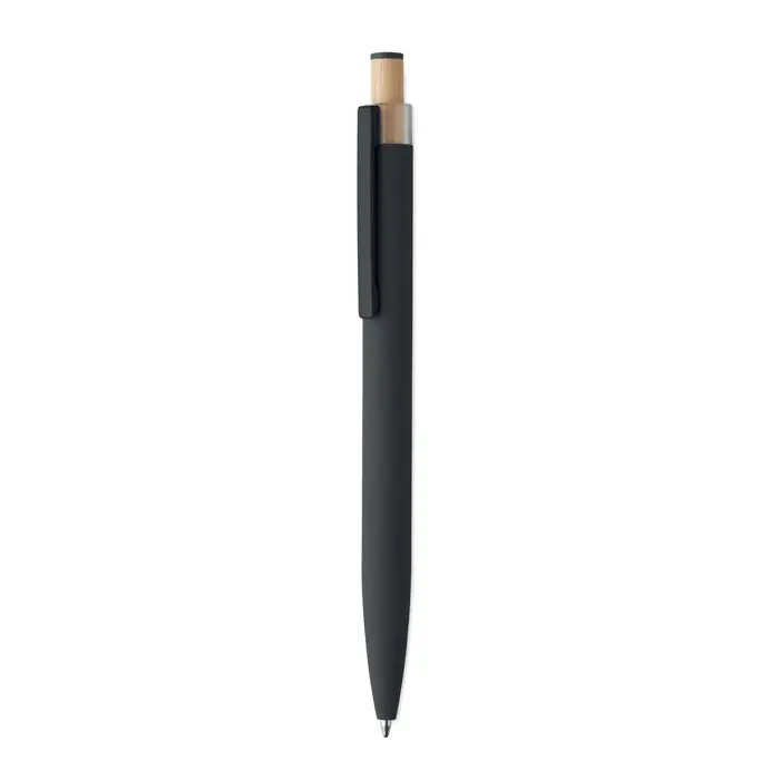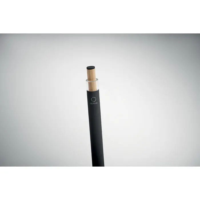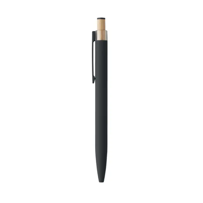 €0.55Kemijska olovka na klip s tijelom od recikliranog aluminija, bambusovim gumbom i detaljem u odgovarajućoj boji te metalnim klipom, plava tinta
