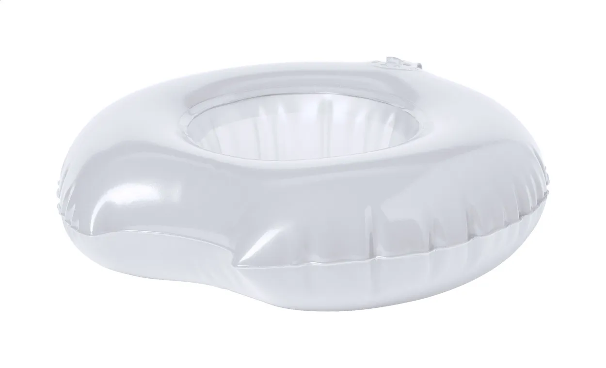 Napuhavajući držač za piće u obliku krafne za jednu limenku ili čašu, PVC. Dimenzije kada je ispuhan su Ø180 mm.