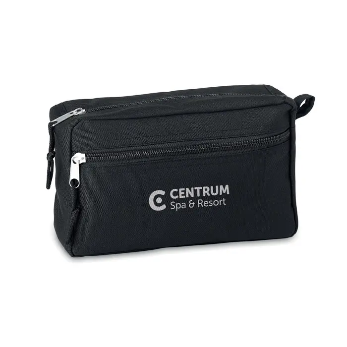 Cosmetic bag with double zipper. 600D RPET.