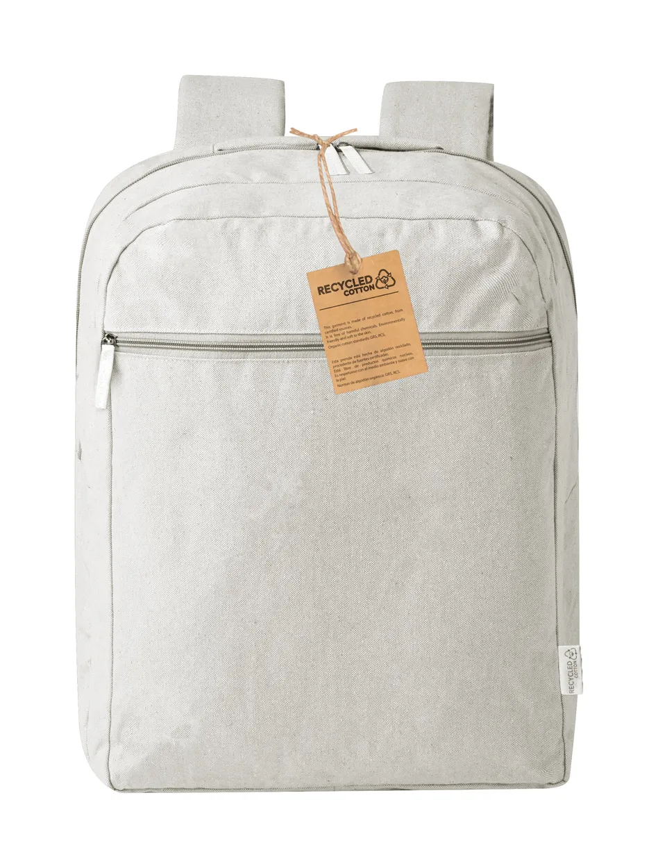 Ruksak od recikliranog pamuka s pretincem na patentni zatvarač, podstavljenim pretincem za laptop (15'') i tablet (10''), prednjim džepom i podesivim naramenicama, s oznakom od recikliranog pamuka, 100% reciklirani pamuk, 300 g/m²