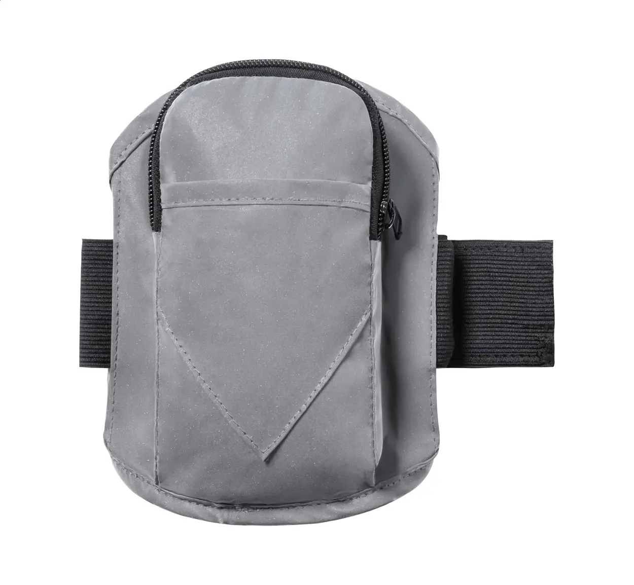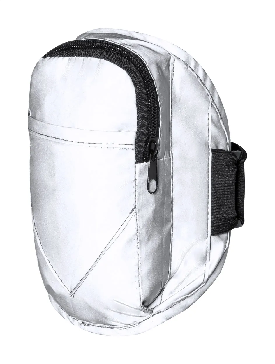 Reflektirajuća traka za ruku za trčanje izrađena od poliestera s patentnim zatvaračem. Može se koristiti za nošenje mobilnog telefona, ključeva, novca ili kreditnih kartica. 210T poliester.