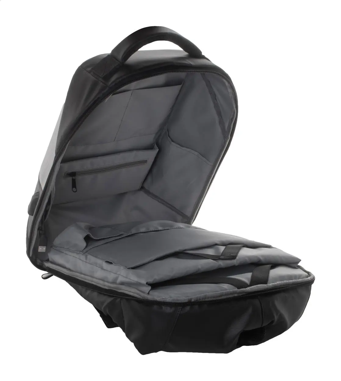 €61.06Vodootporni, protuprovalni ruksak s više pretinaca na patentni zatvarač, podstavljeni pretinac za laptop (15") i tablet (10"), podstavljeno leđno područje i naramenice. S ugrađenim USB priključkom za power bank. Napravljen od 1200D najlona.