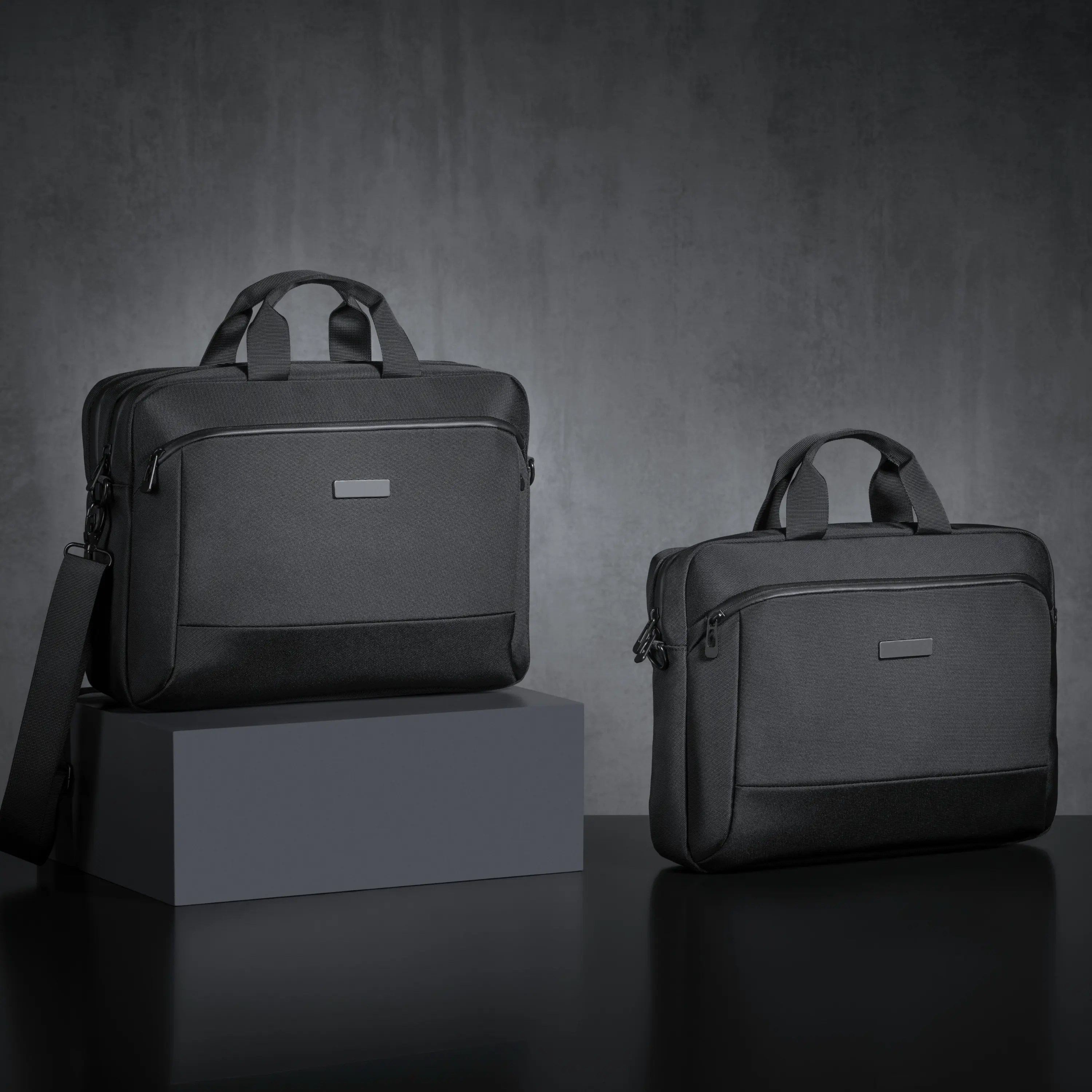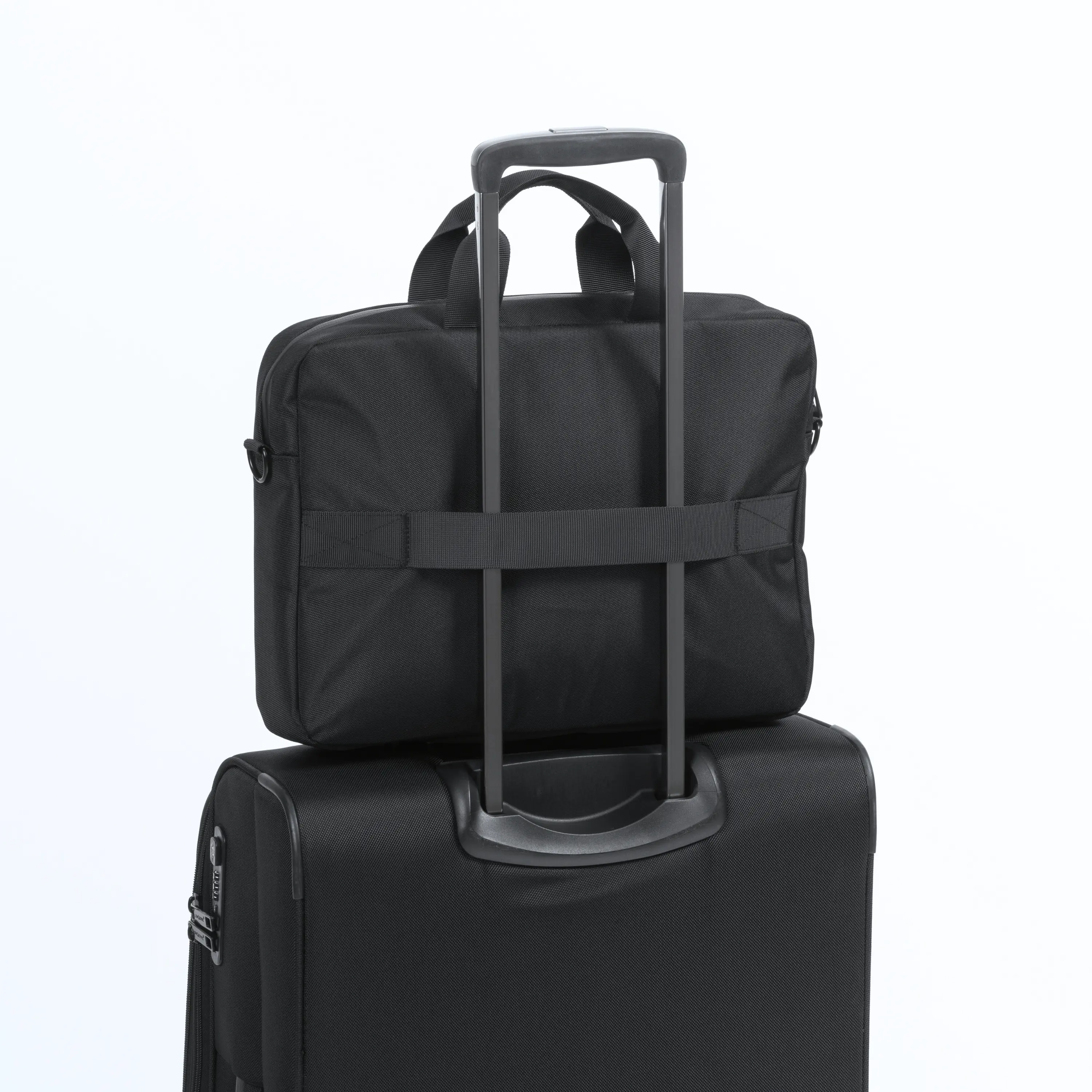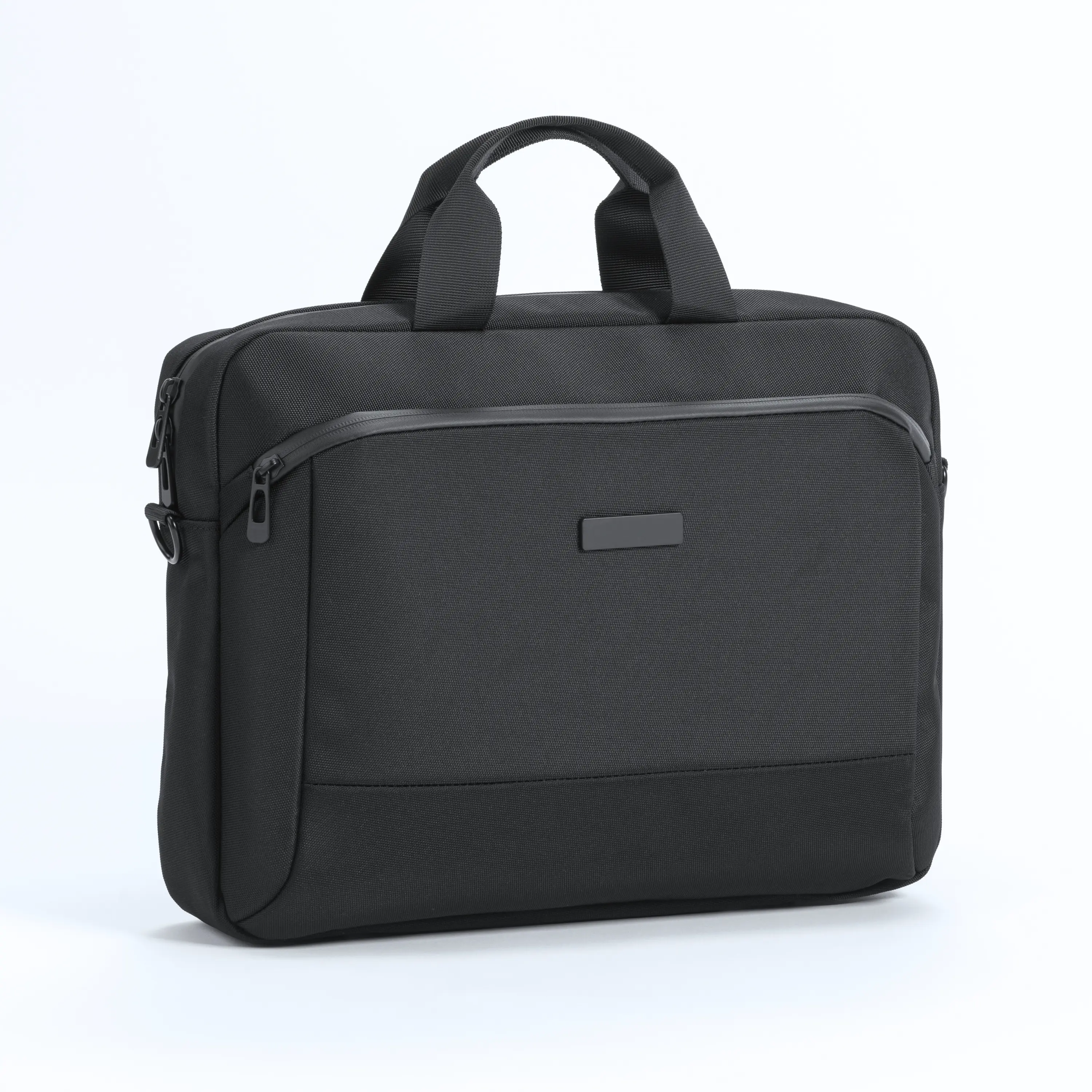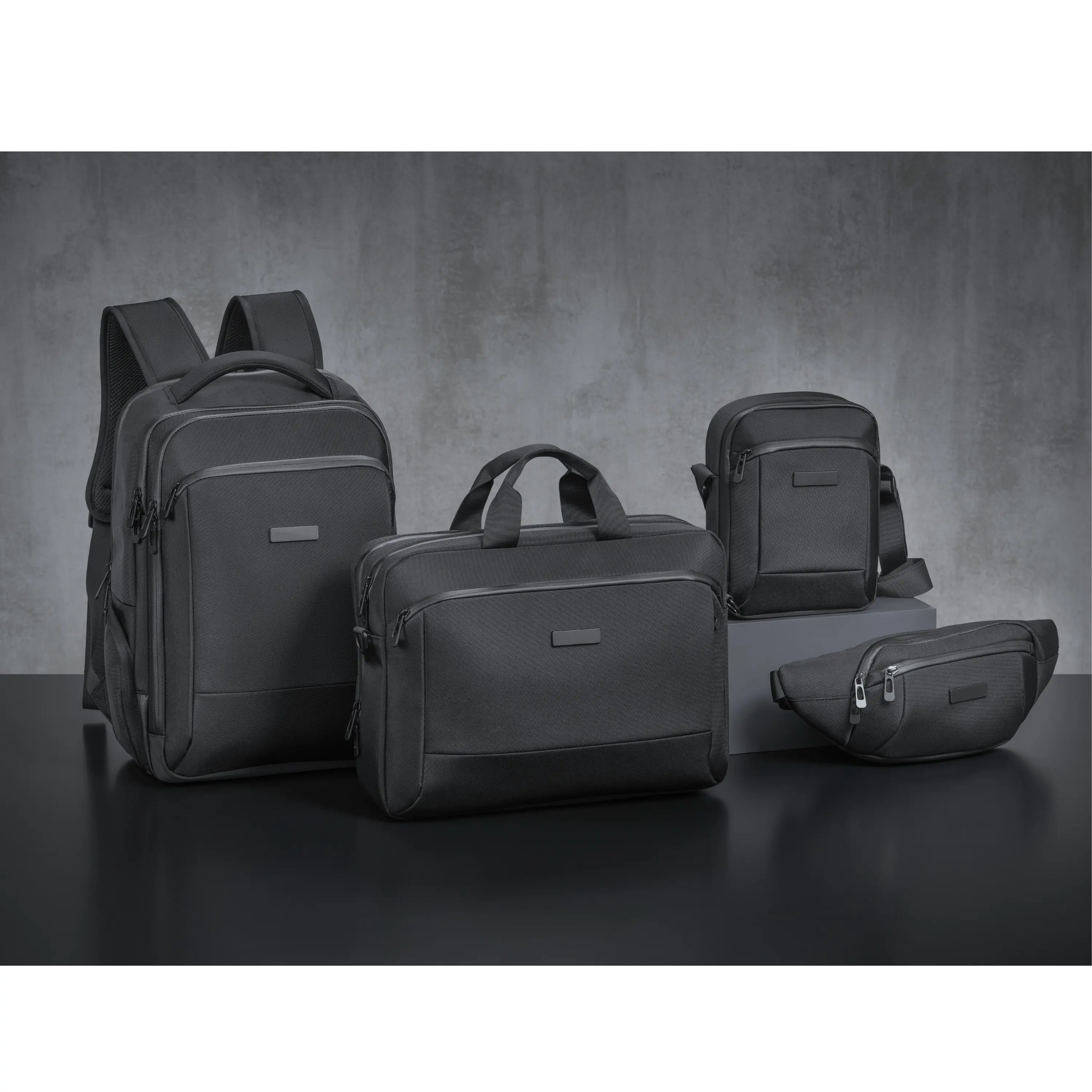 €49.50Poslovna torba iz kolekcije BIZZ PRO izrađena od izdržljivog poliestera, crne boje s minimalističkim završetkom, ojačana konstrukcija za dodatnu zaštitu, glavni pretinac s podstavljenom pregradom za laptop do 15 inča i dodatnim pregradama za dokumente i dodatke, prednji džep s patentnim zatvaračem za brzi pristup sitnicama, stražnji džep s trakom za pričvršćivanje na kofer, svi patentni zatvarači su vodootporni, podstavljena podesiva naramenica i dvije čvrste ručke za nošenje, metalna pločica za logotip na prednjoj strani