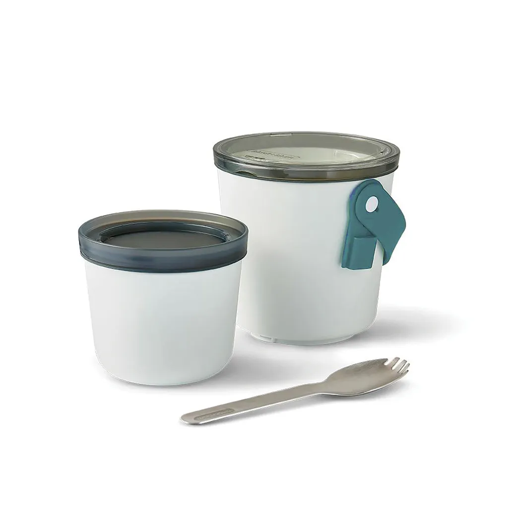 €24.98Inspiriran indijskim tiffin posudama, Lunch Pot je uži i viši što ga čini kompaktnim i jednostavnim za spremanje u torbu, sastoji se od dvije vodonepropusne posude koje se mogu spojiti za nošenje, posude imaju silikonsku traku za nošenje koja drži i nehrđajući čelik spork (žlica i vilica), omogućuje odvajanje različitih namirnica poput jogurta, voća, rezanaca ili juhe, manja posuda se nakon upotrebe može spremiti u veću radi lakšeg skladištenja, pogodno za mikrovalnu pećnicu i perilicu posuđa osim tritan poklopca