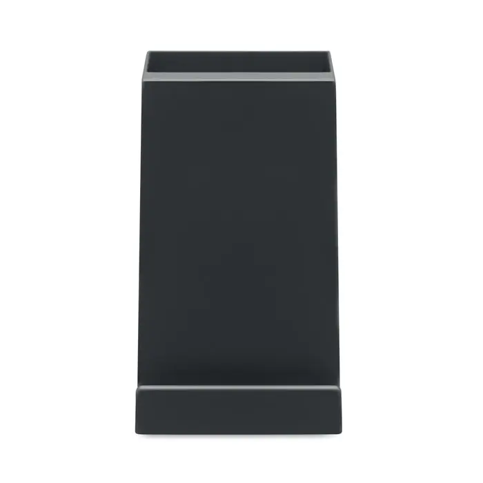 15W dual coil wireless charger with pen holder in ABS. Output: DC 9V/1.67A (15W) for quick charging. 1 USB-A port power output.