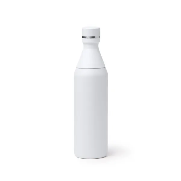 Double-walled thermal bottle made from 304 stainless steel. Capacity: 550 ml. Features a double opening in the body, separating the dispenser from the bottle, which makes it more versatile and allows, for example, ice to be added inside. In addition, the dispenser has a separate lid.