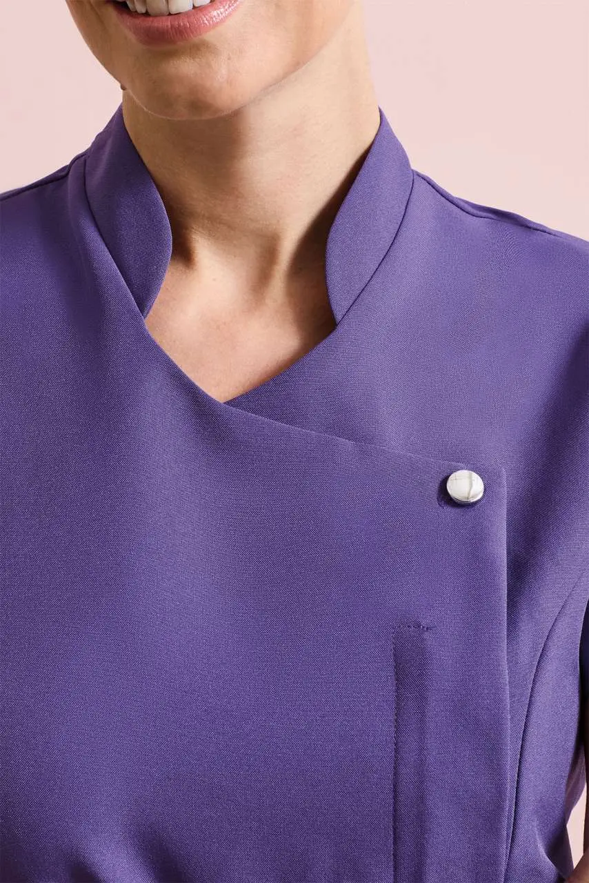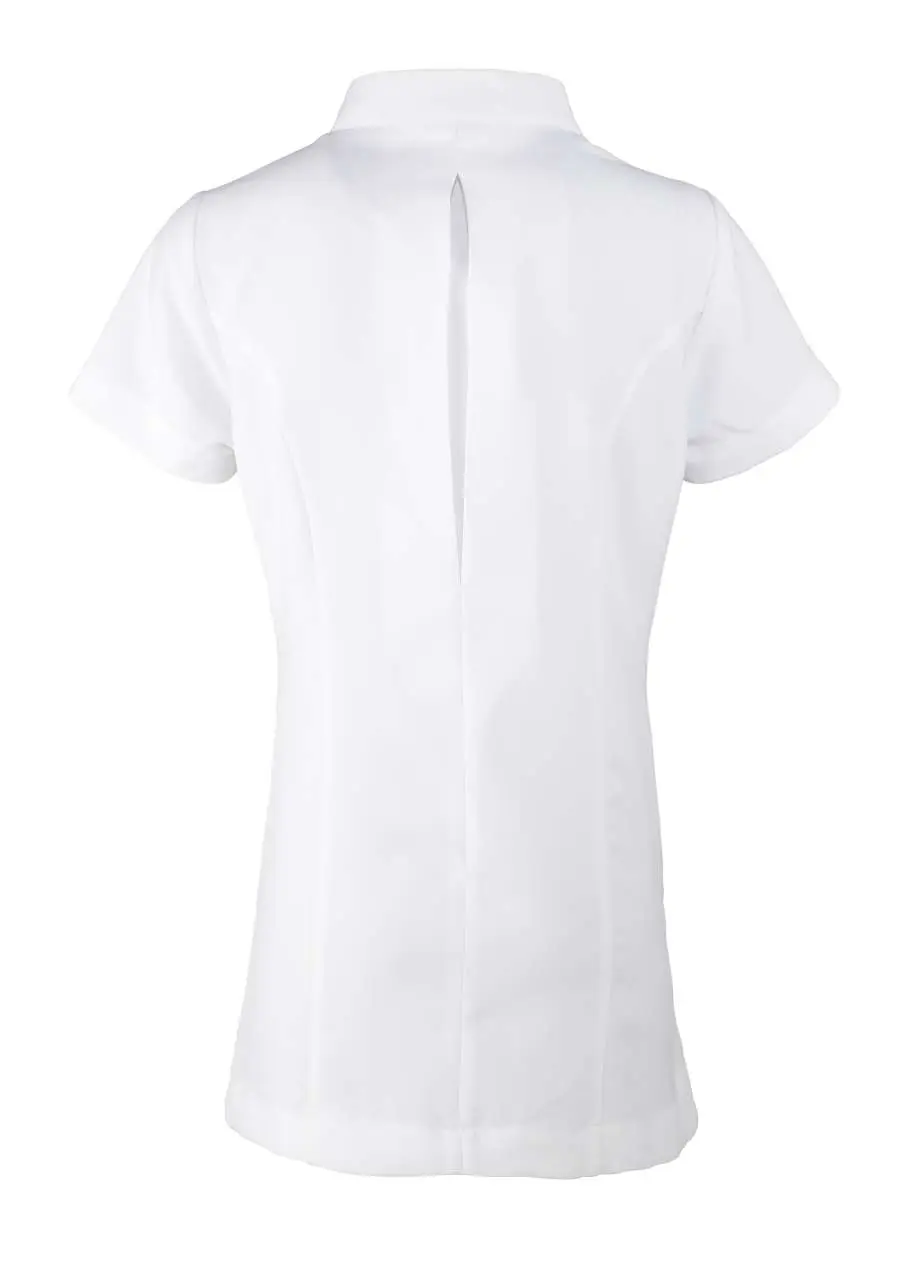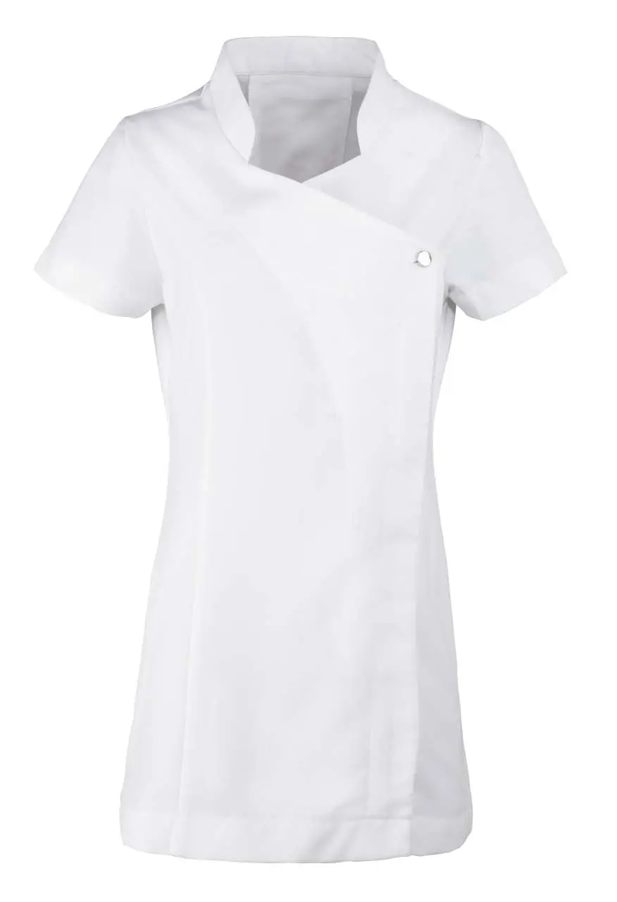 €19.29Materijal 100% poliester platno 185 g/m² tunika za beauty i spa s prednjim kopčanjem na gumbe i skrivenim patentnim zatvaračem mandarinski ovratnik kratki rukav princez šavovi bočni prorezi stražnji nabor za lakše kretanje jednostavno održavanje