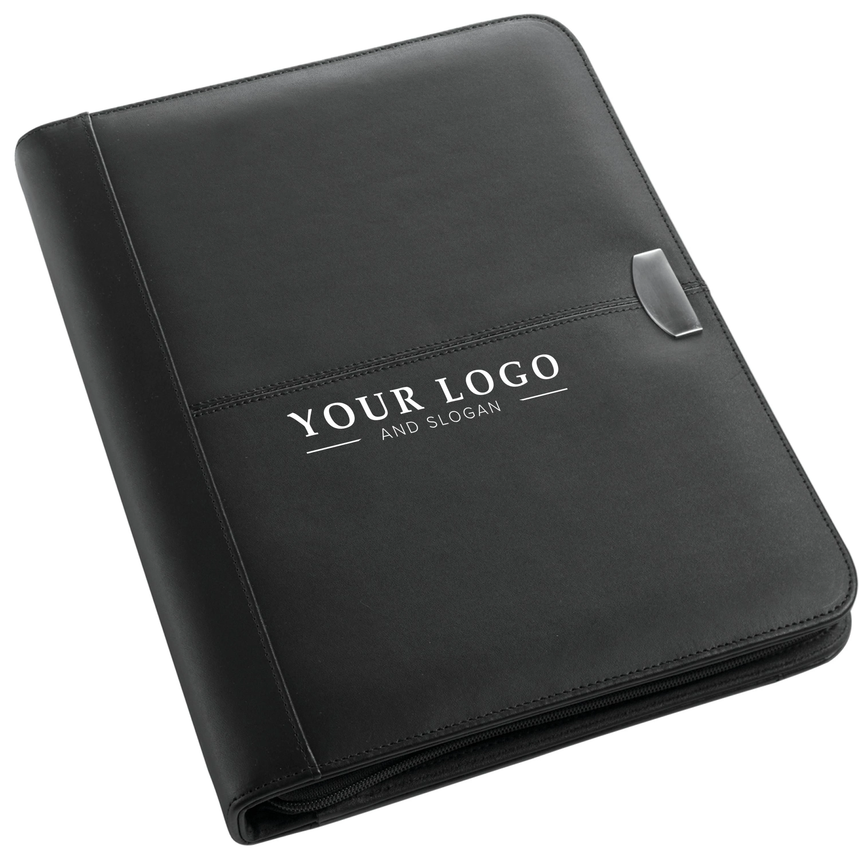 konferencijska mapa od spojenog kože s patentnim zatvaračem (približno A4) s blokom od 30 stranica različitim džepovima i elastičnom petljom za olovku (olovka nije uključena)