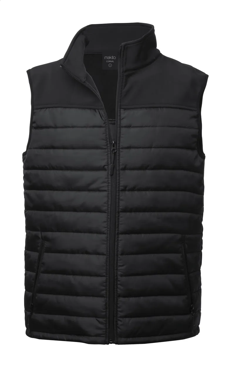 Vodootporna i prozračna, prsluk s patentnim zatvaračem izrađen od kombinacije softshell materijala i poliestera s 2 bočna džepa.