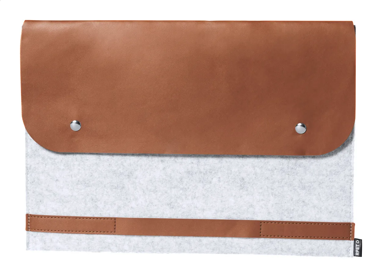 RPET filc torbica za laptop s PU kožnom dekoracijom i preklopnim zatvaračem. S istaknutom RPET etiketom. Pogodna za laptope do 15".